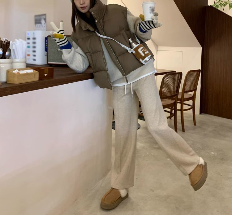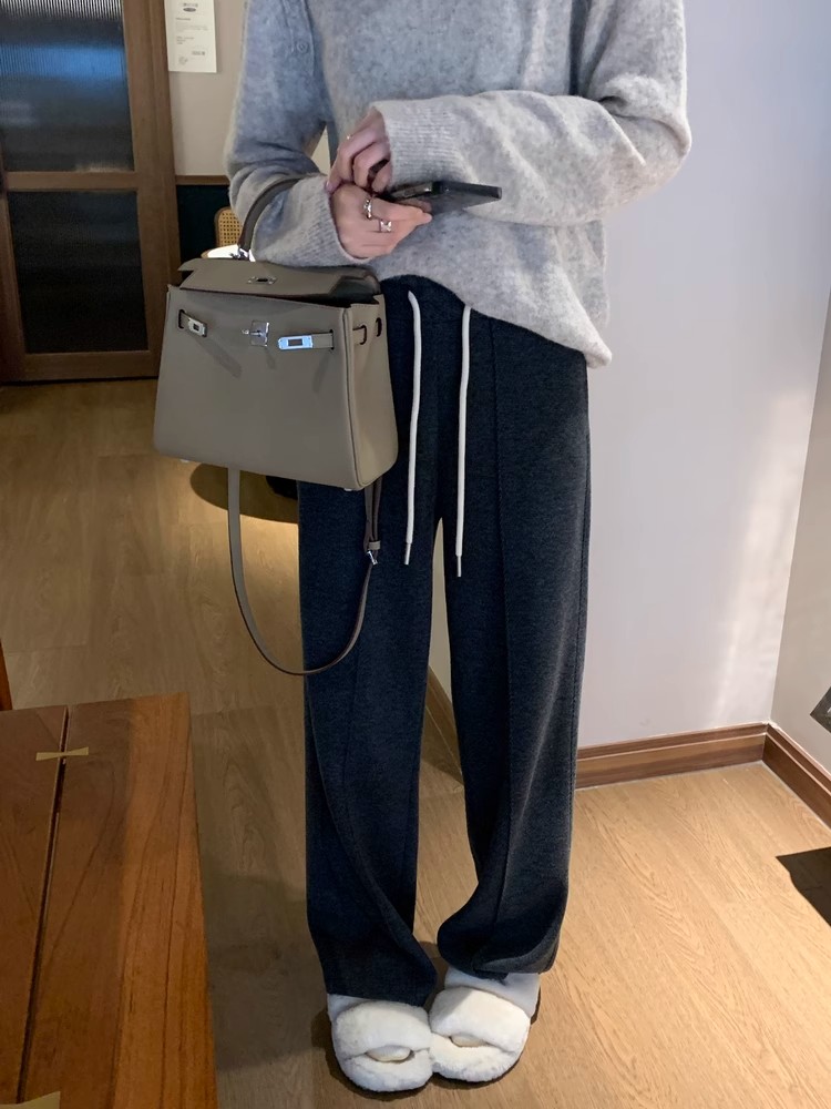 韓版高腰人字紋直筒寬褲(2色)