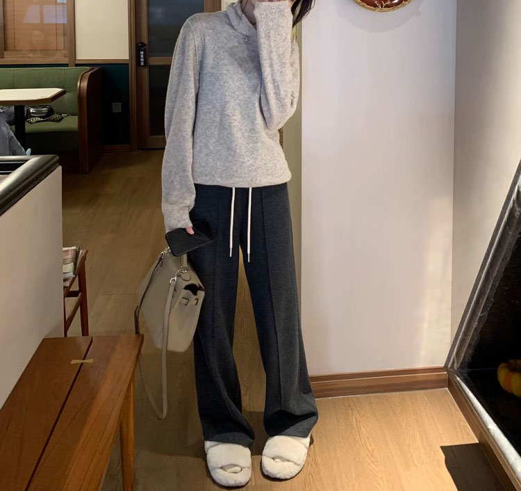 韓系高腰人字紋直筒闊腿褲(2色)