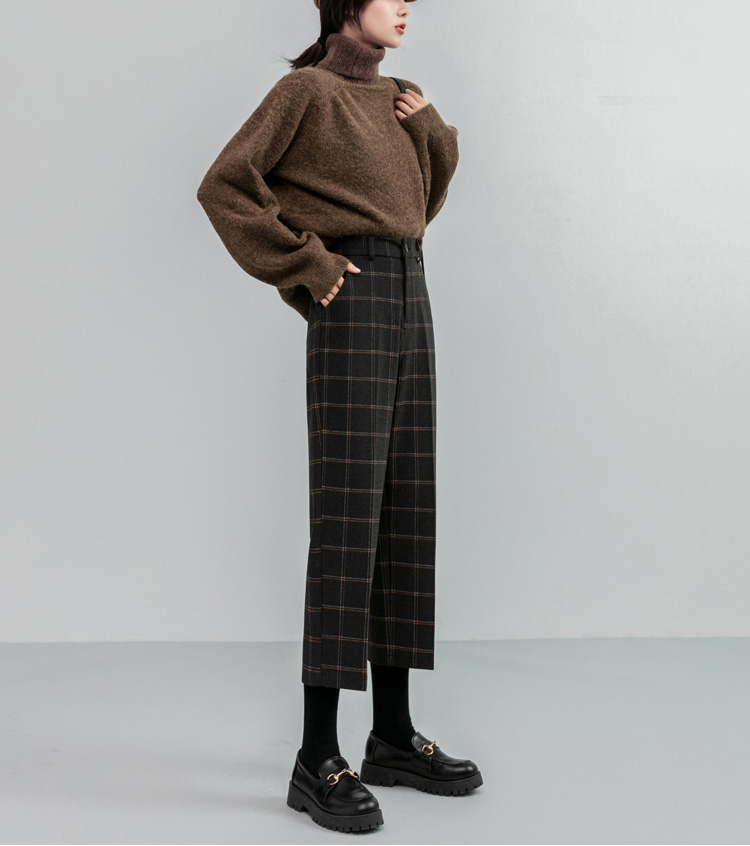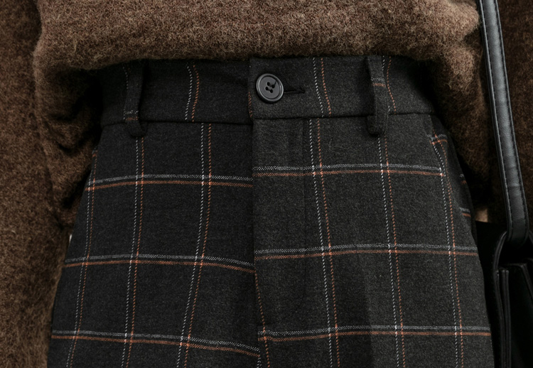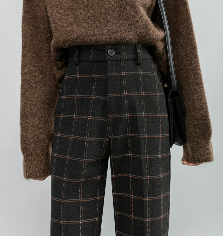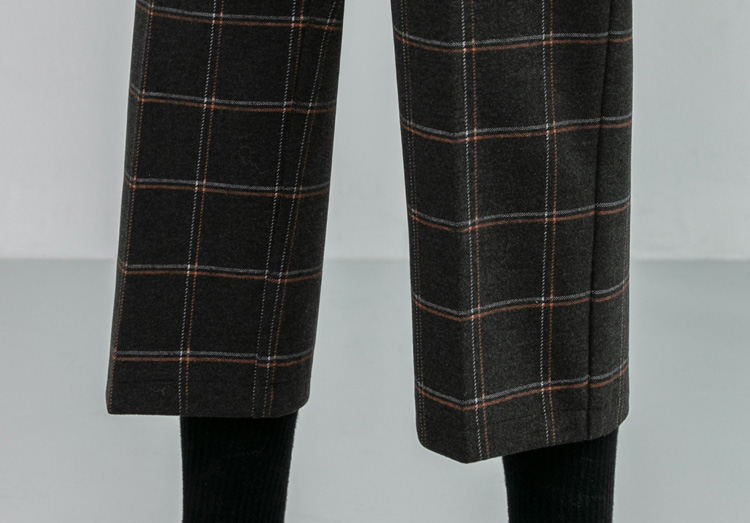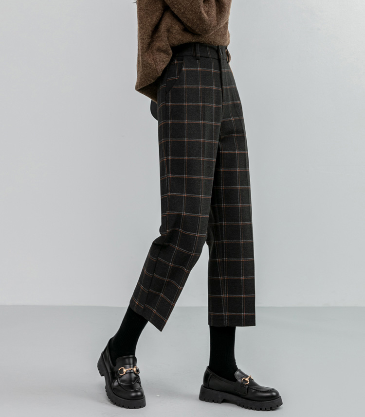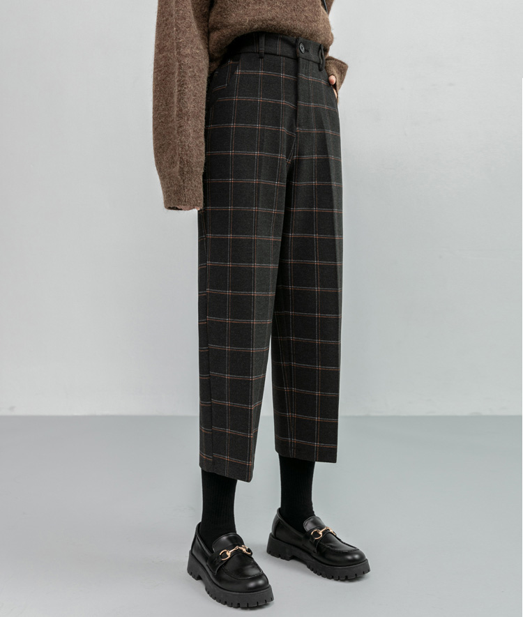 韓系百搭格紋直筒修身八分/九分褲