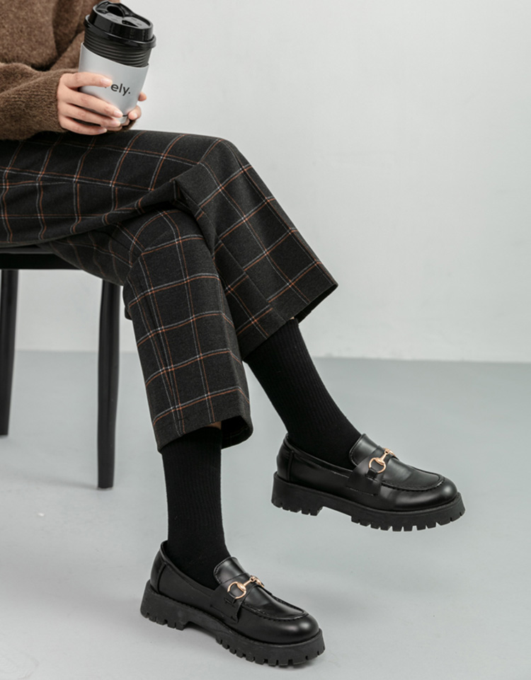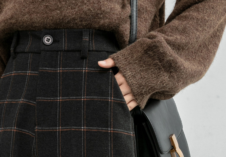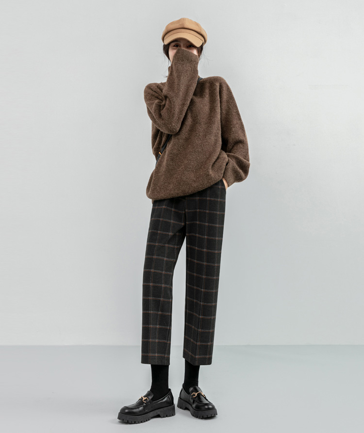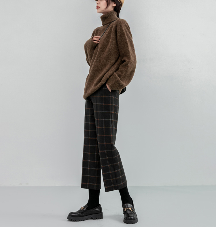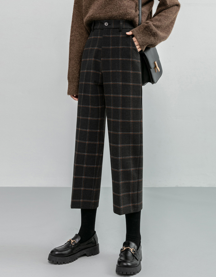 韓系百搭格紋直筒修身八分/九分褲