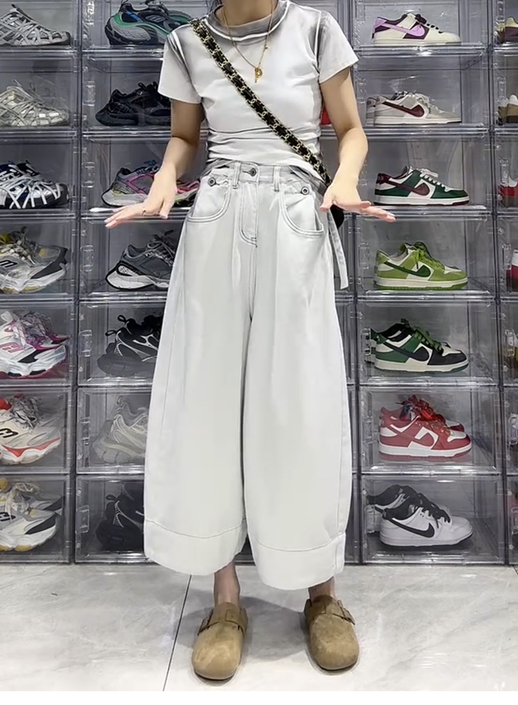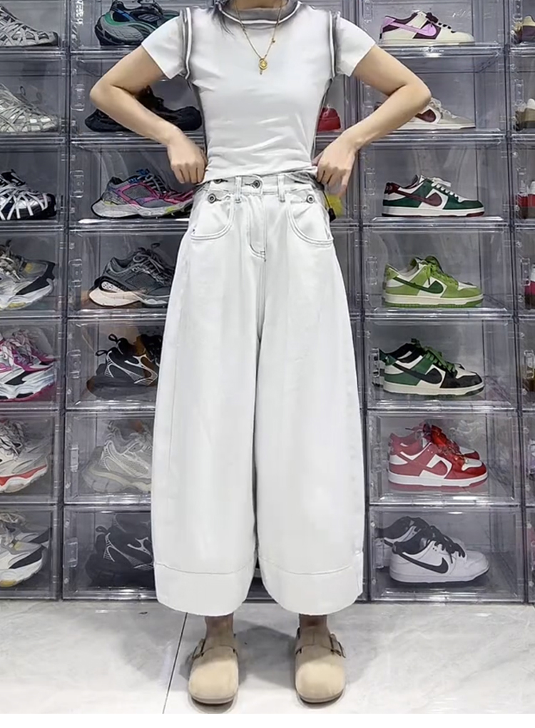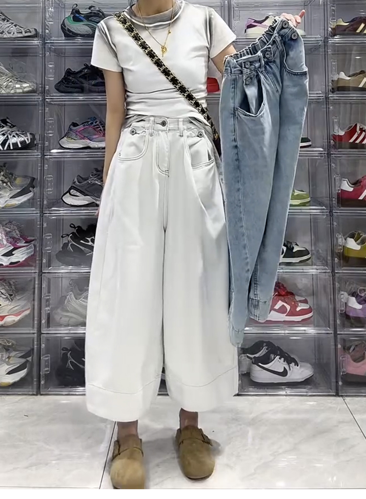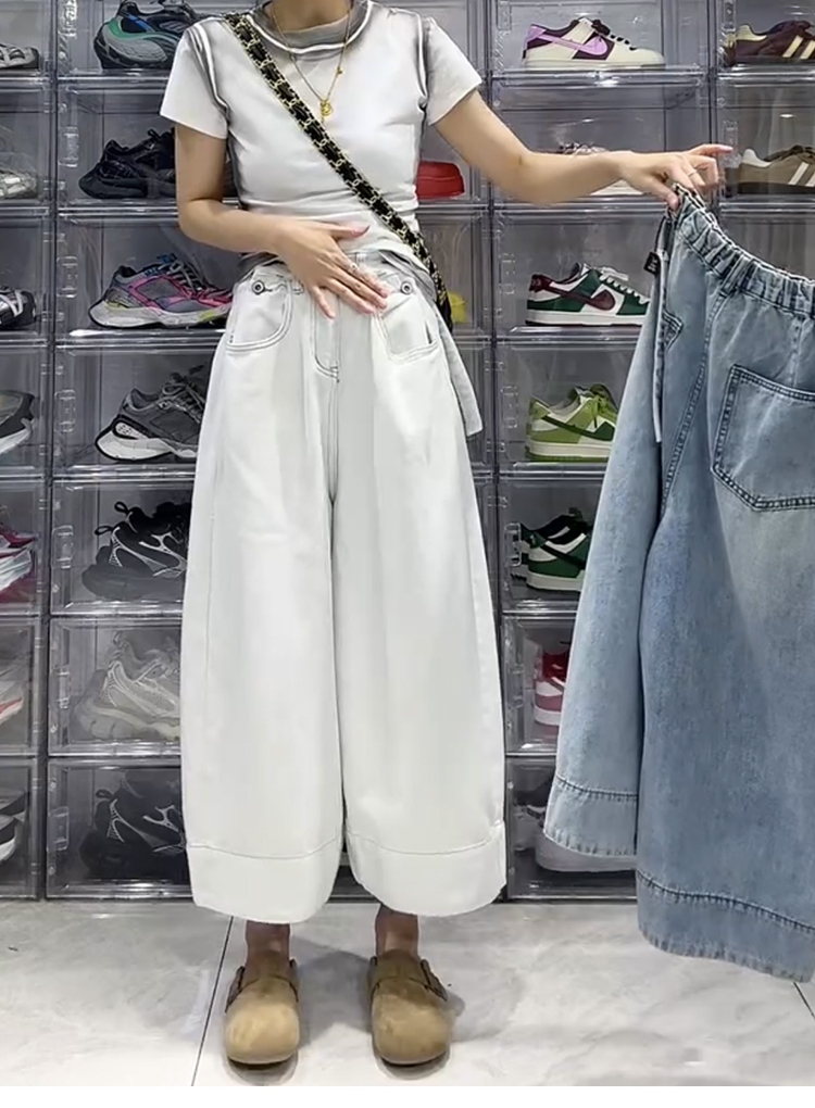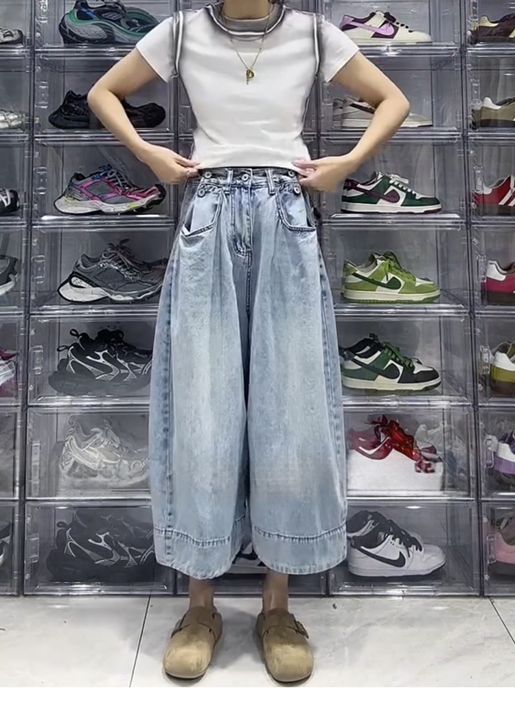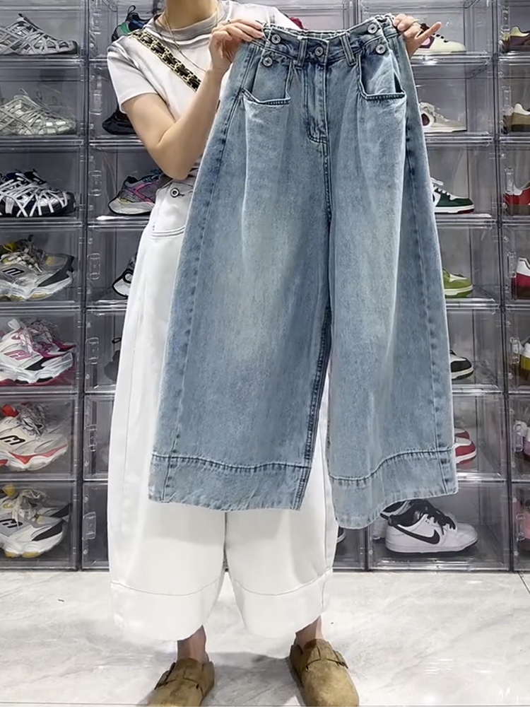 大碼梨形寬鬆百搭闊腿牛仔褲(2色)