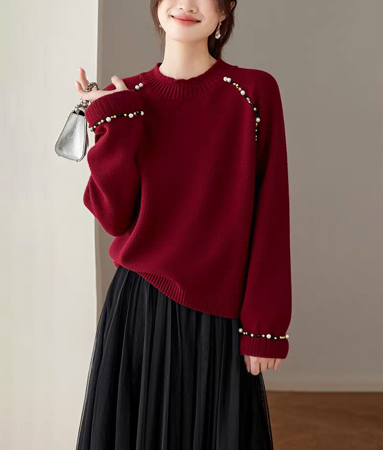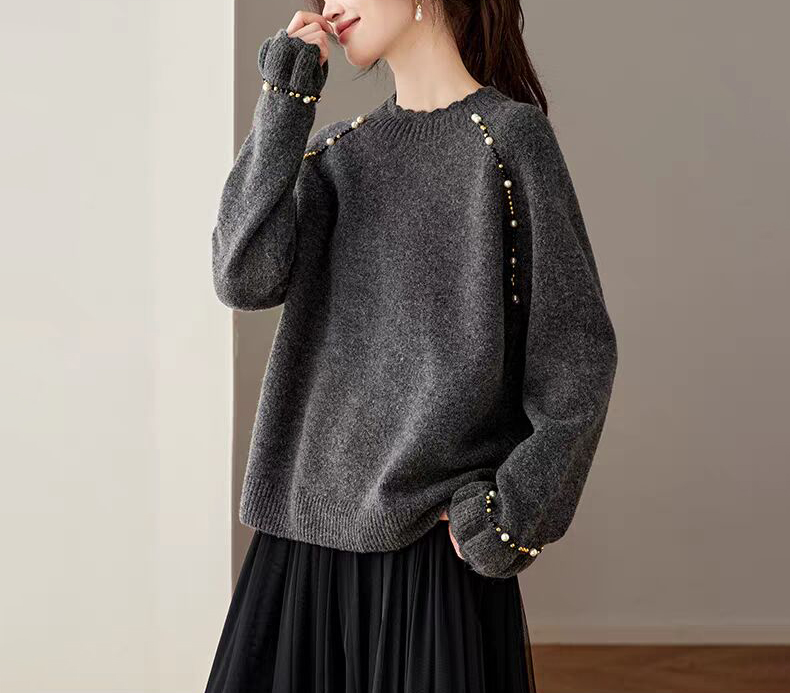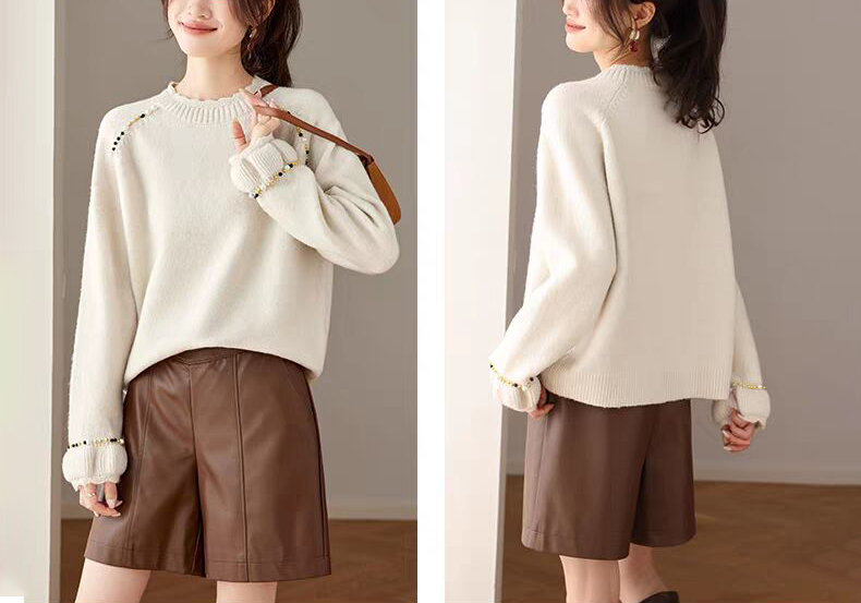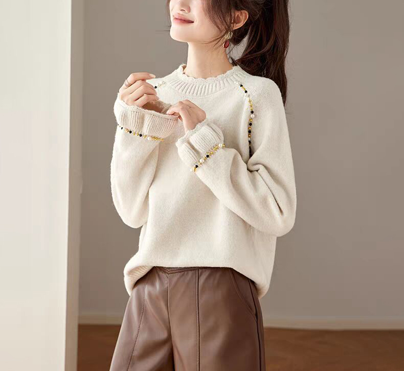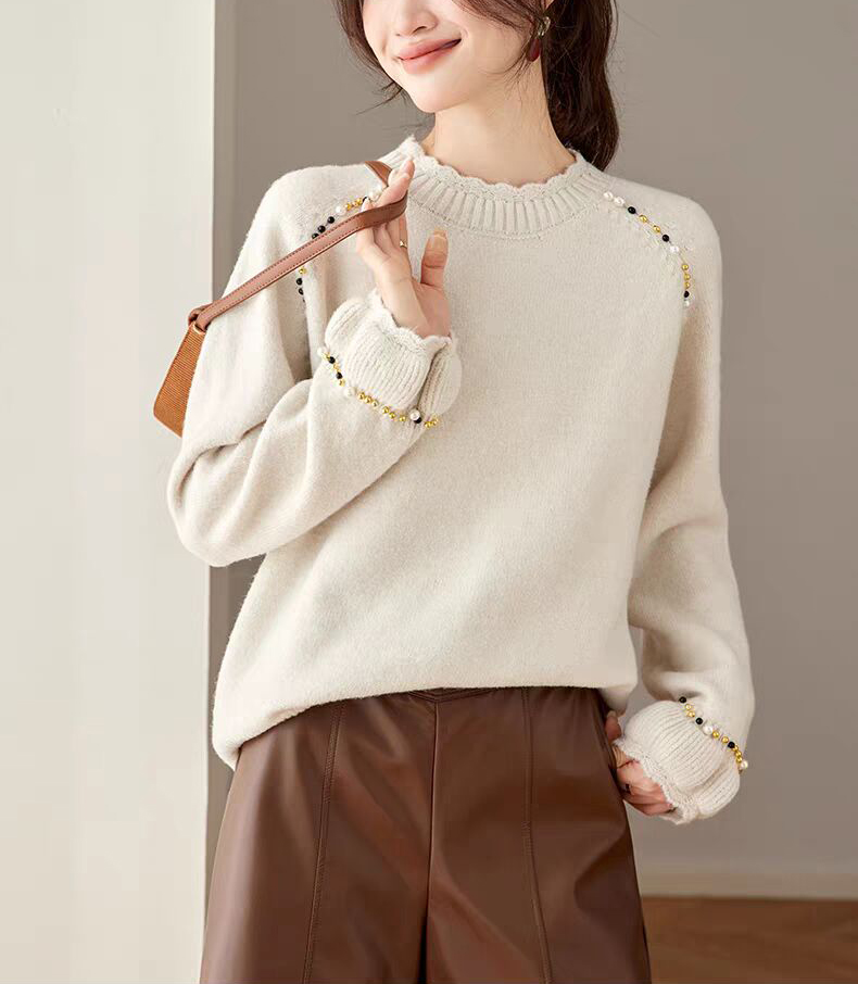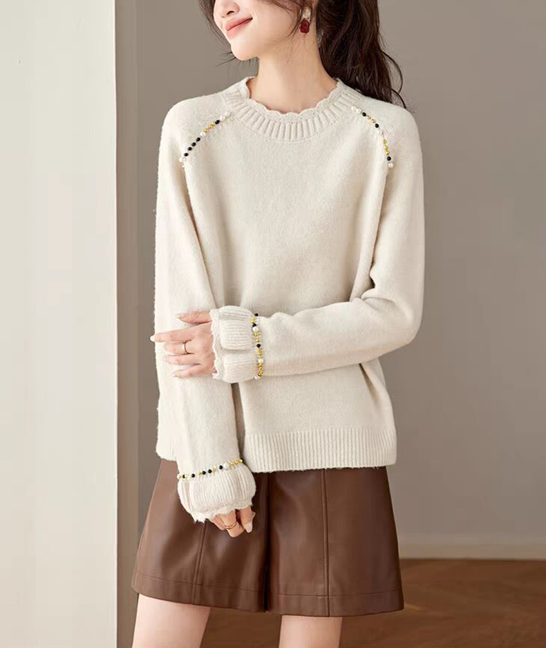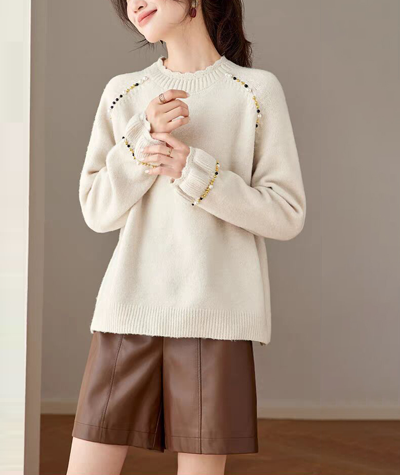 慵懶釘珠圓領針織毛衣(3色)