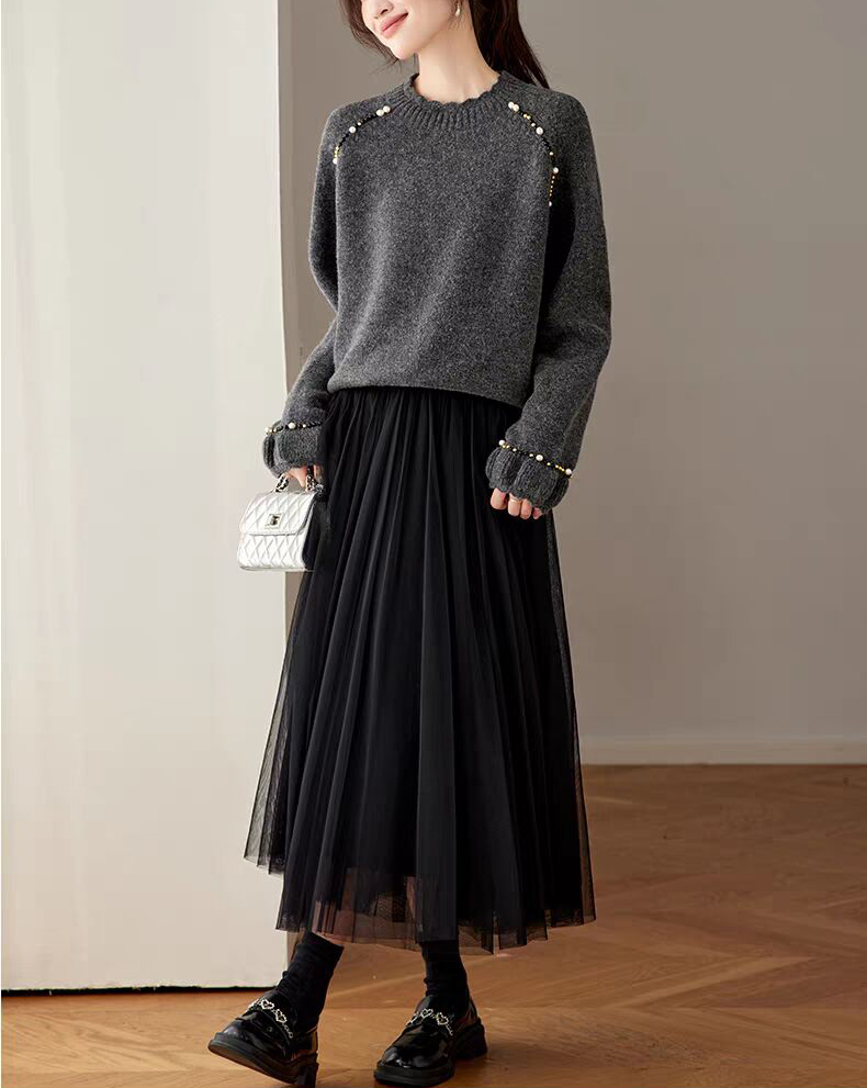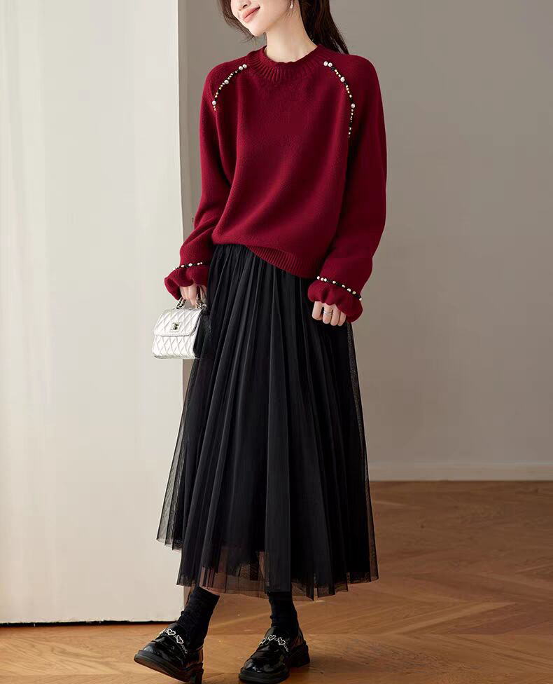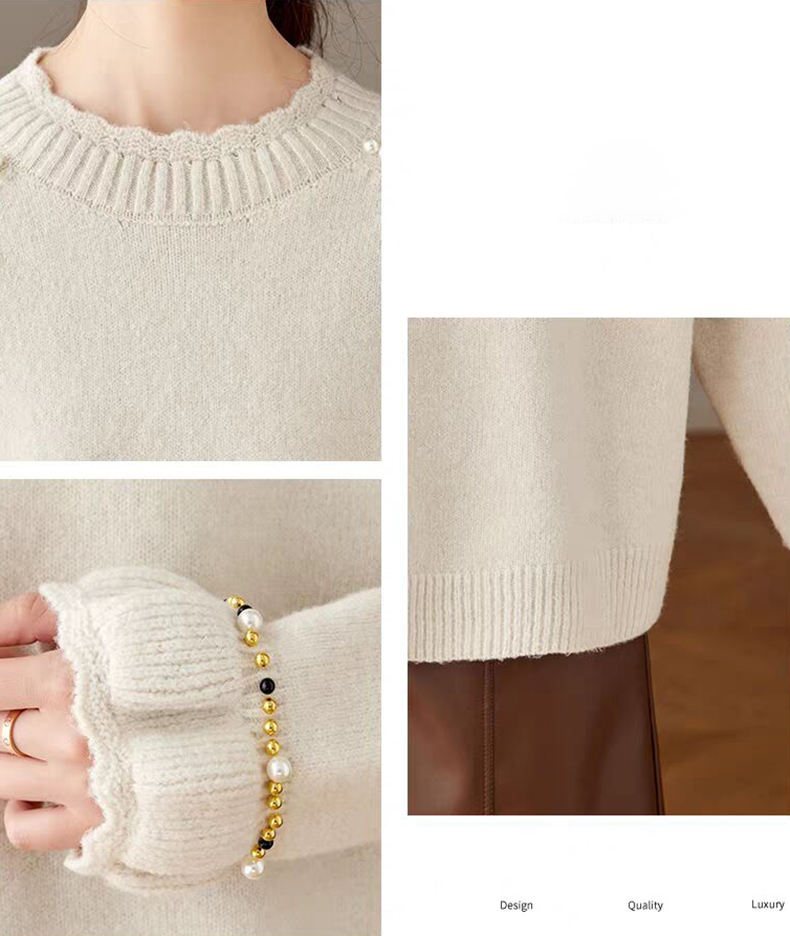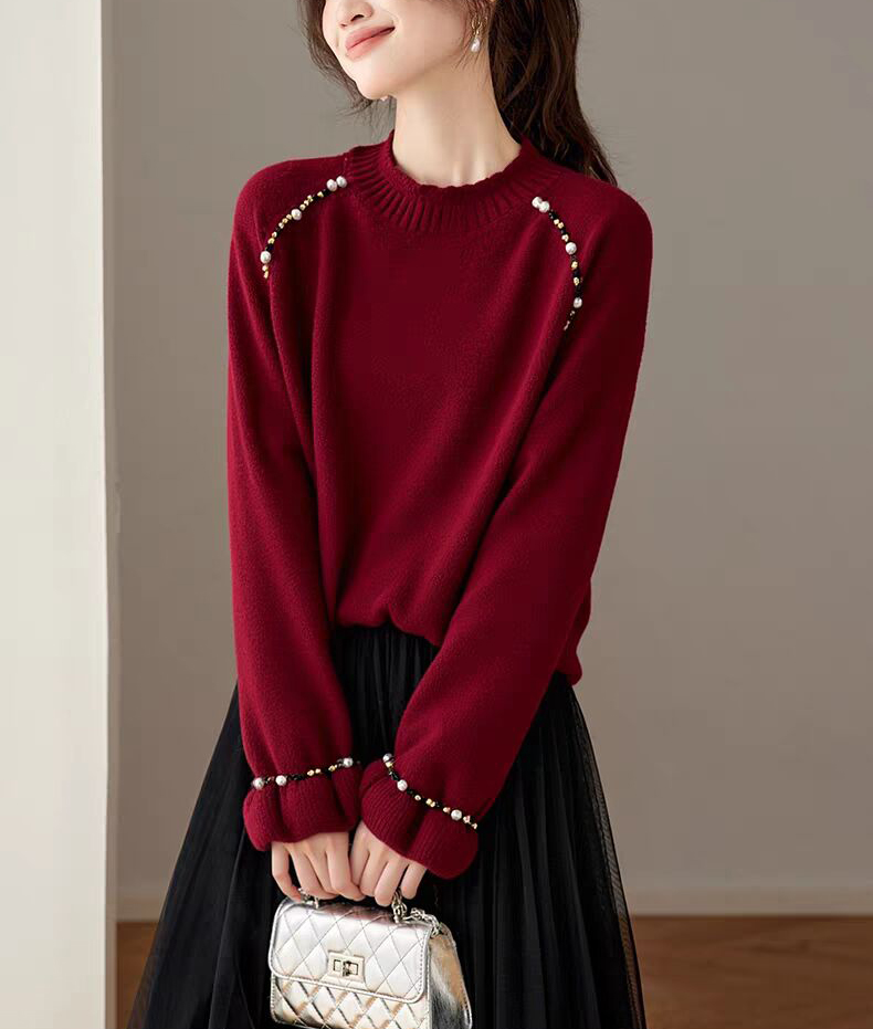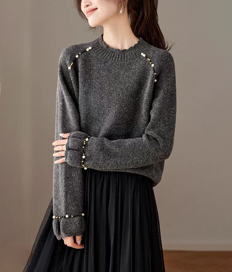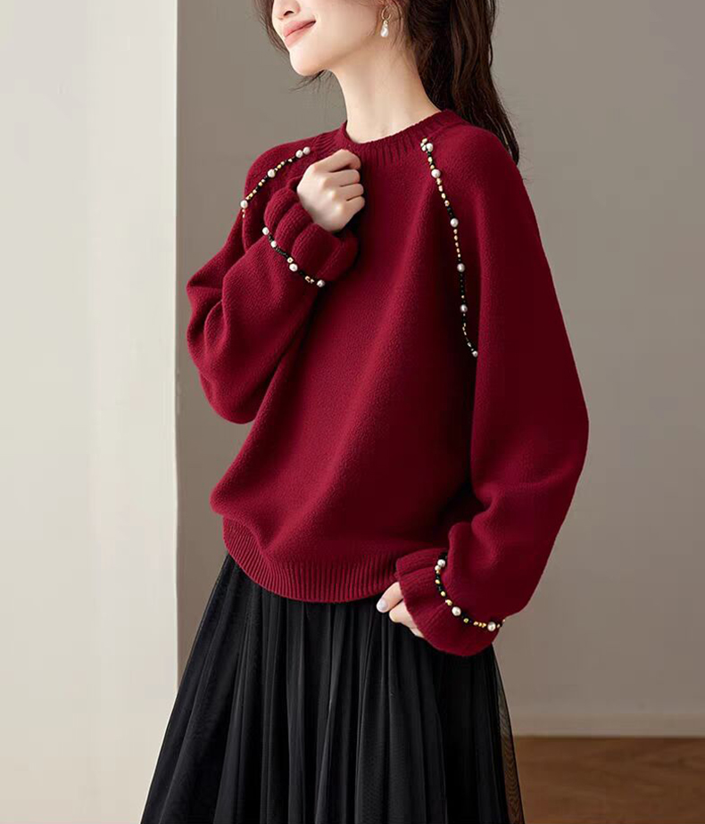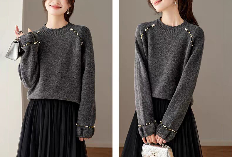 慵懶釘珠圓領針織毛衣(3色)