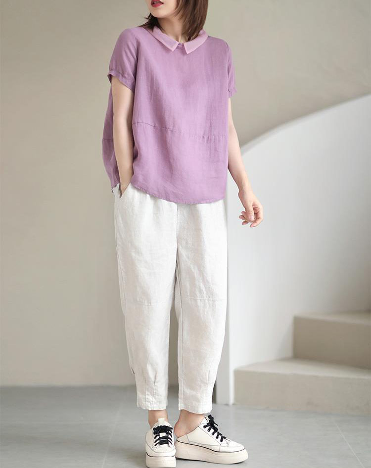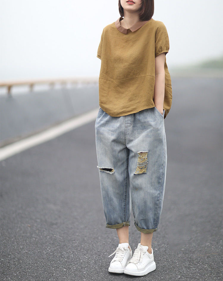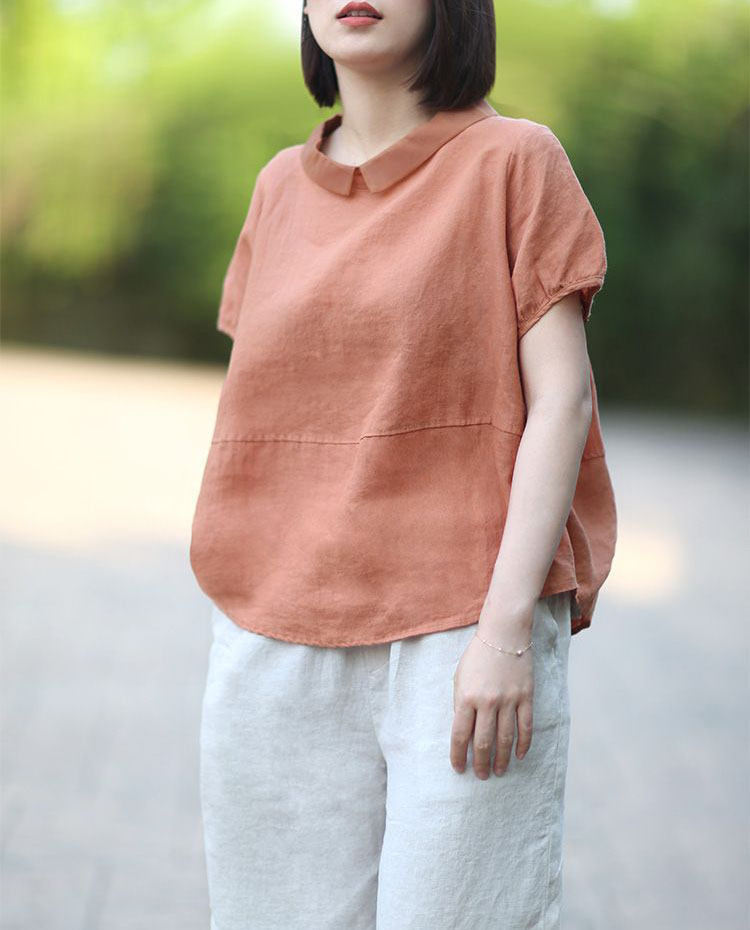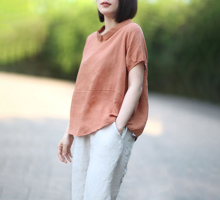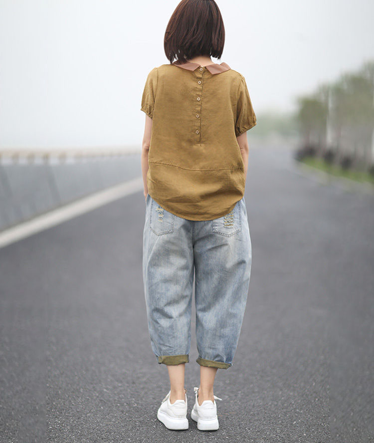 文藝休閒韓版寬鬆隨性拼接翻領襯衫(5色)