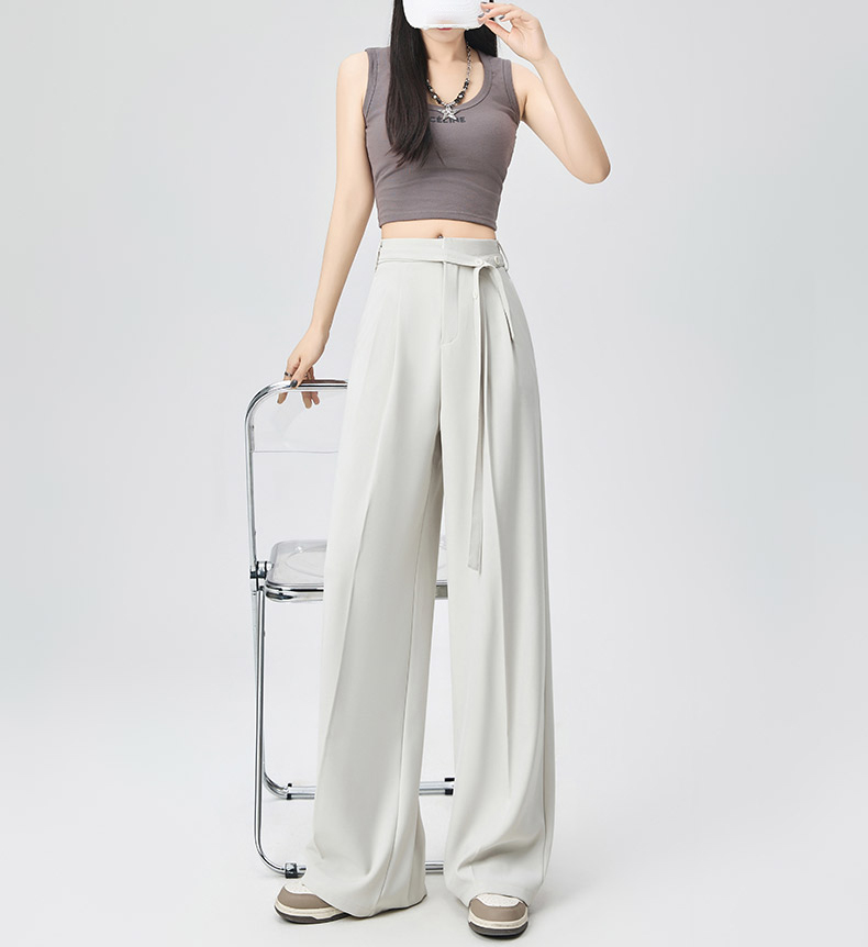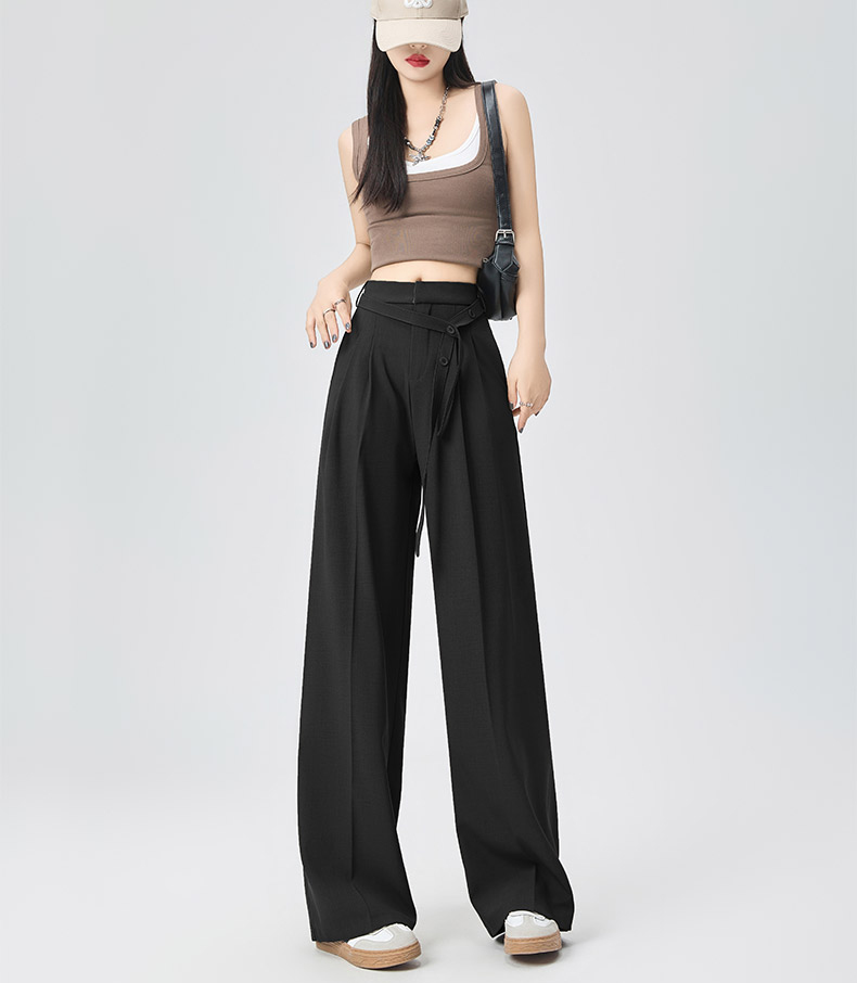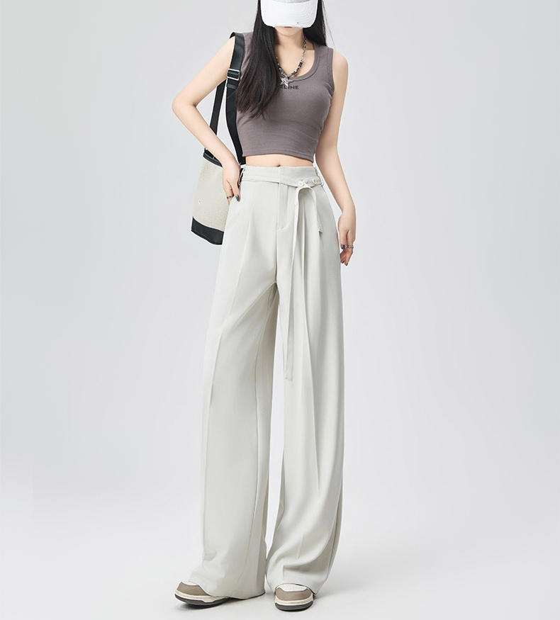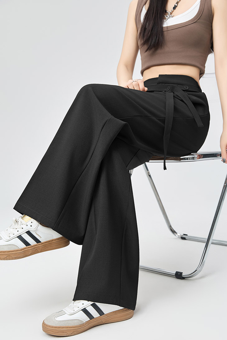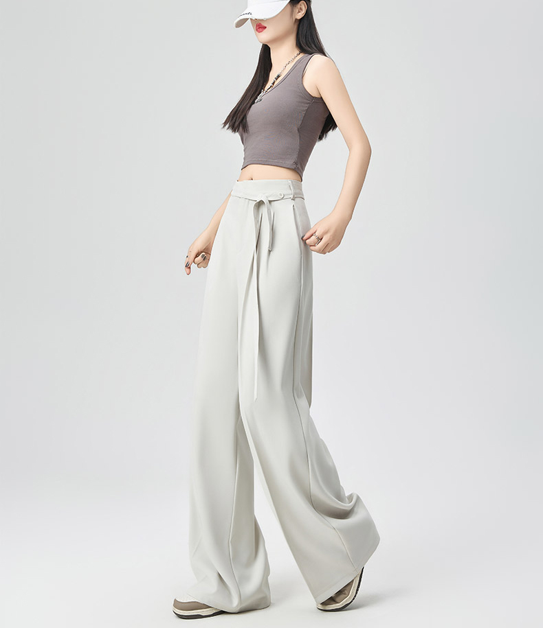 腰身飄帶設計寬鬆百搭垂感休閒褲(4色)