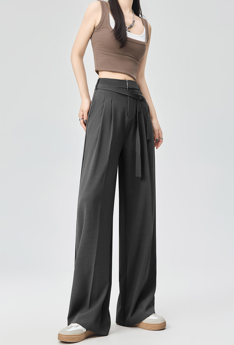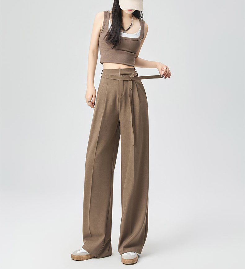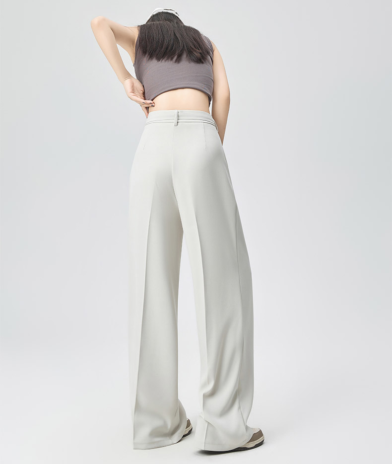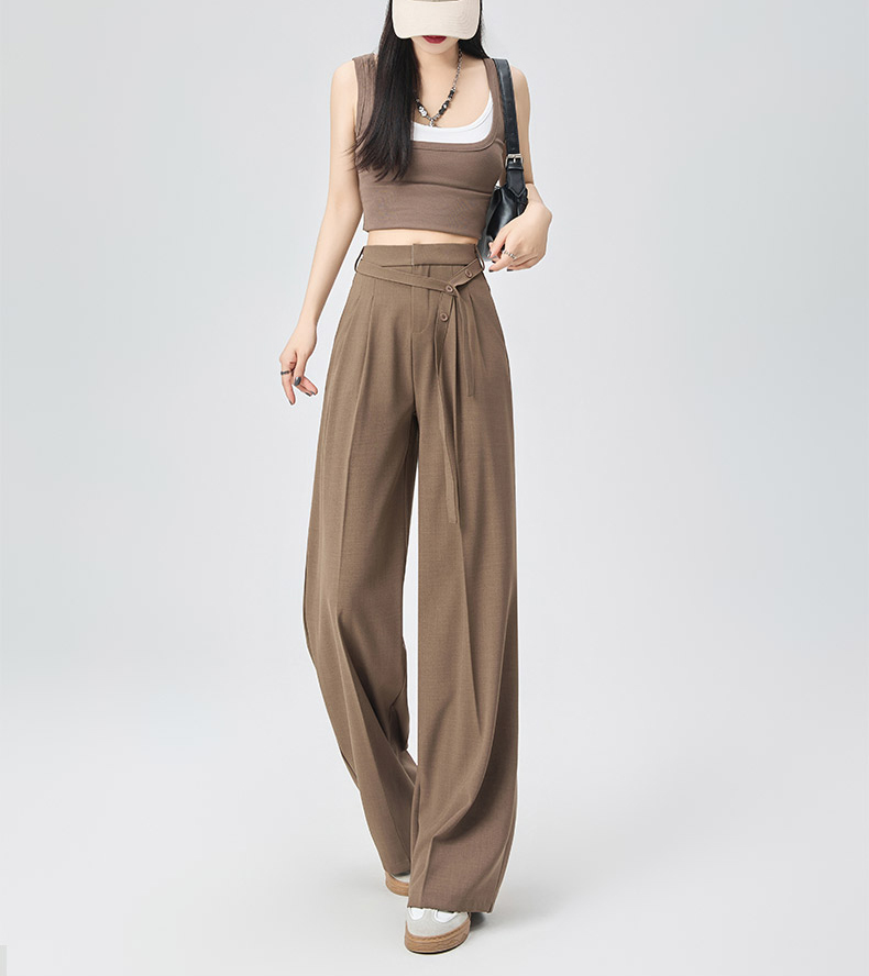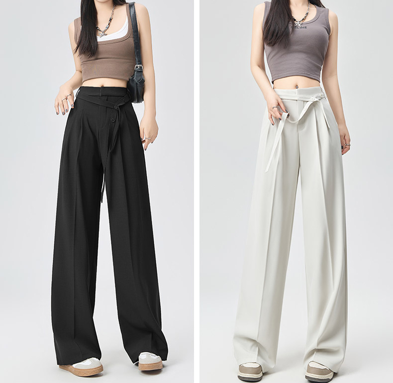 腰身飄帶設計寬鬆百搭垂感休閒褲(4色)