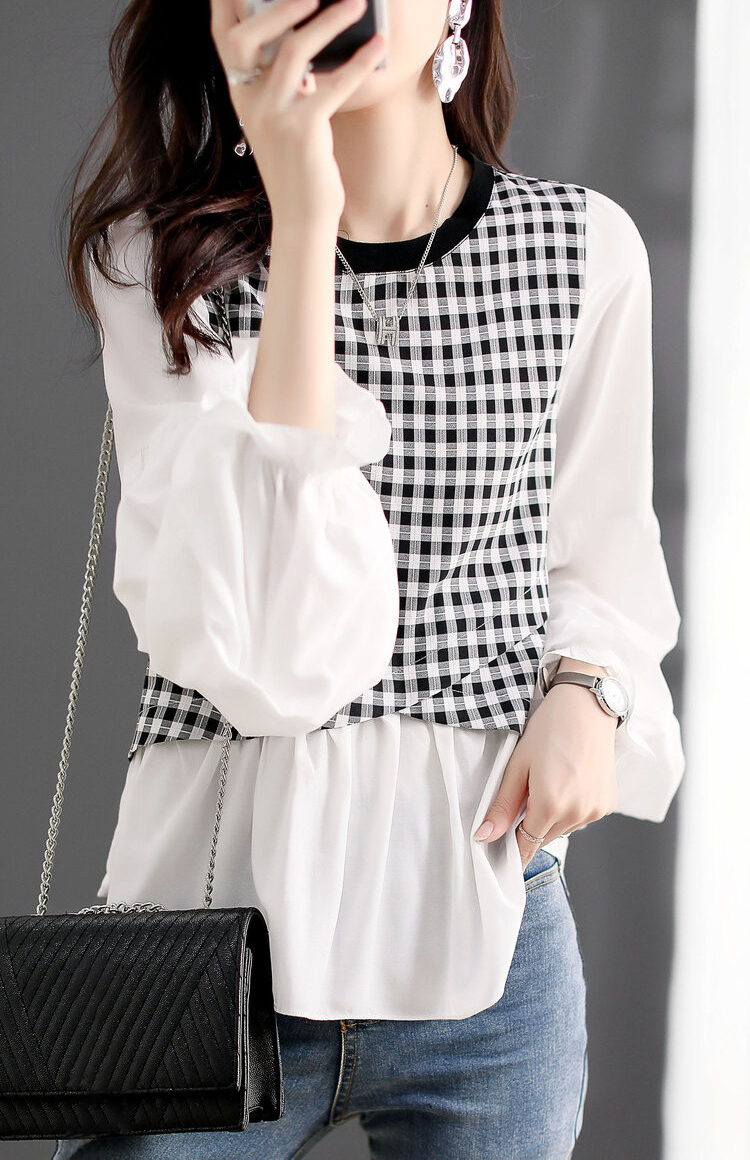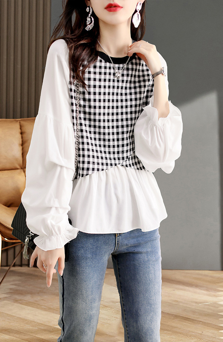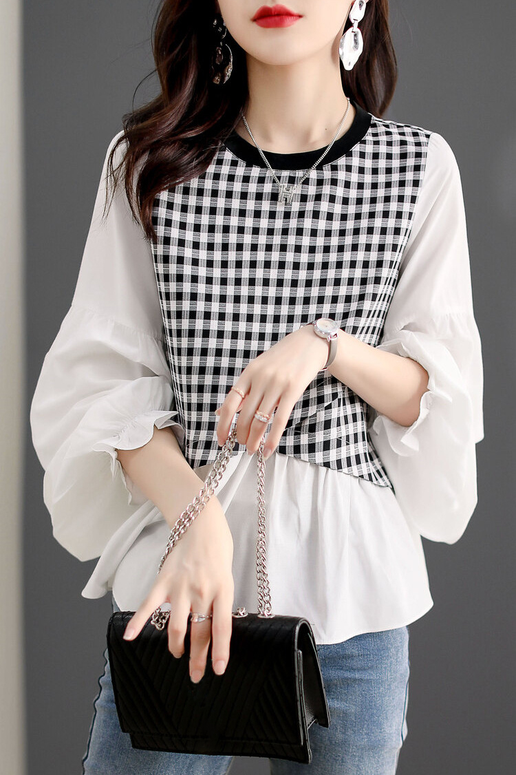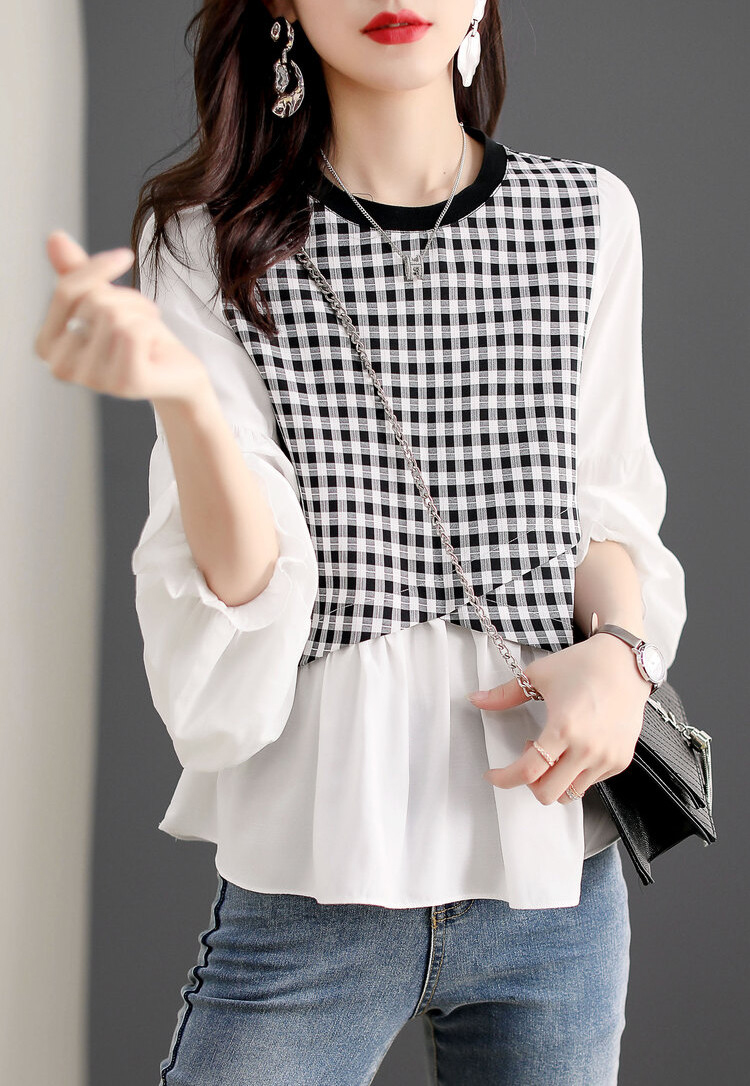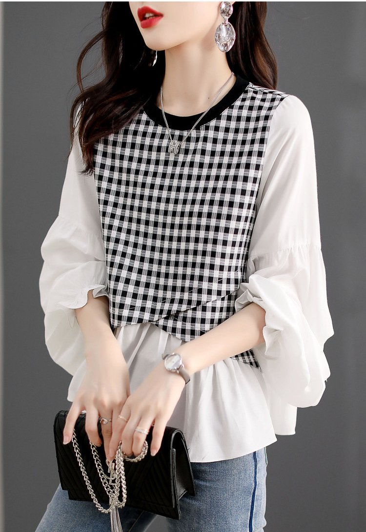 寬鬆休閒百搭拼接喇叭袖T恤