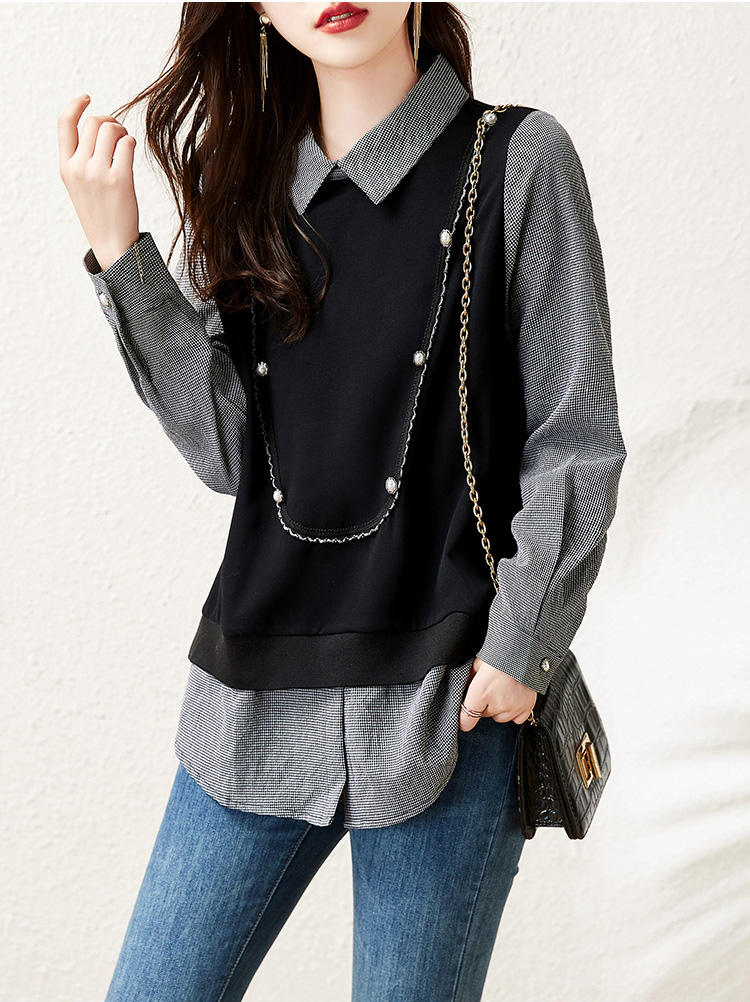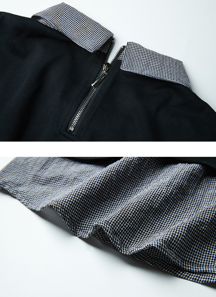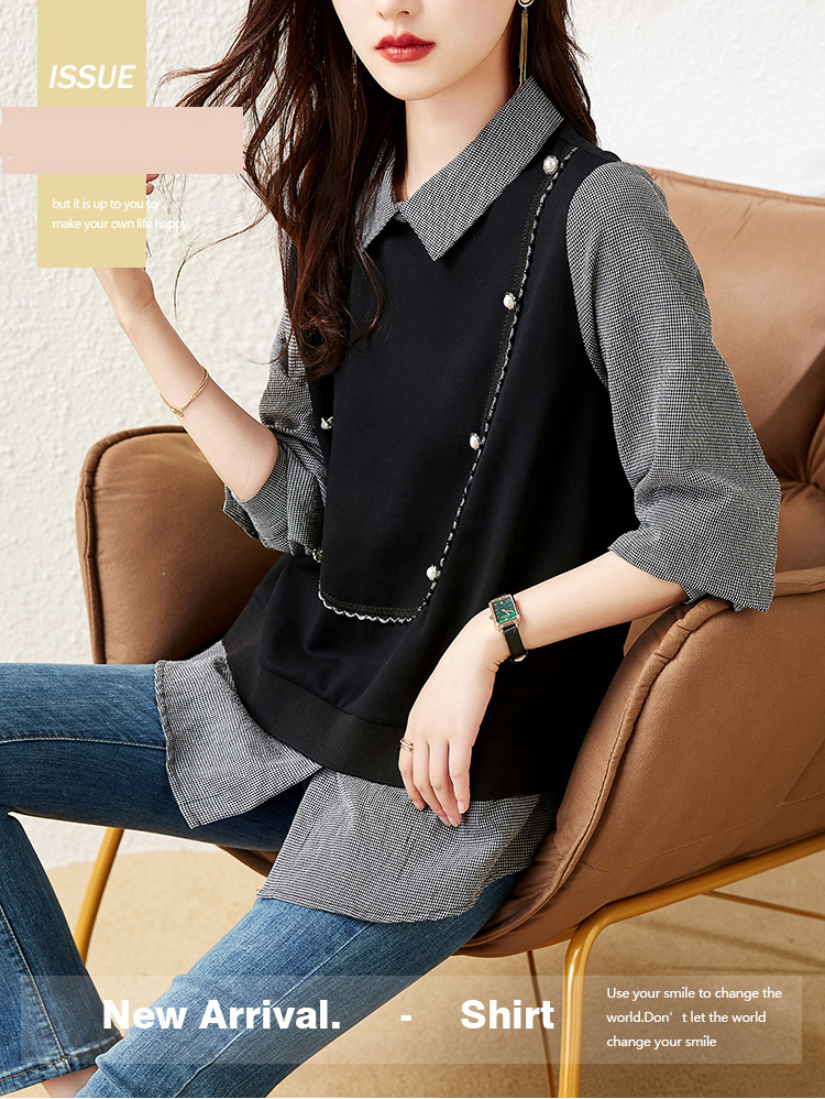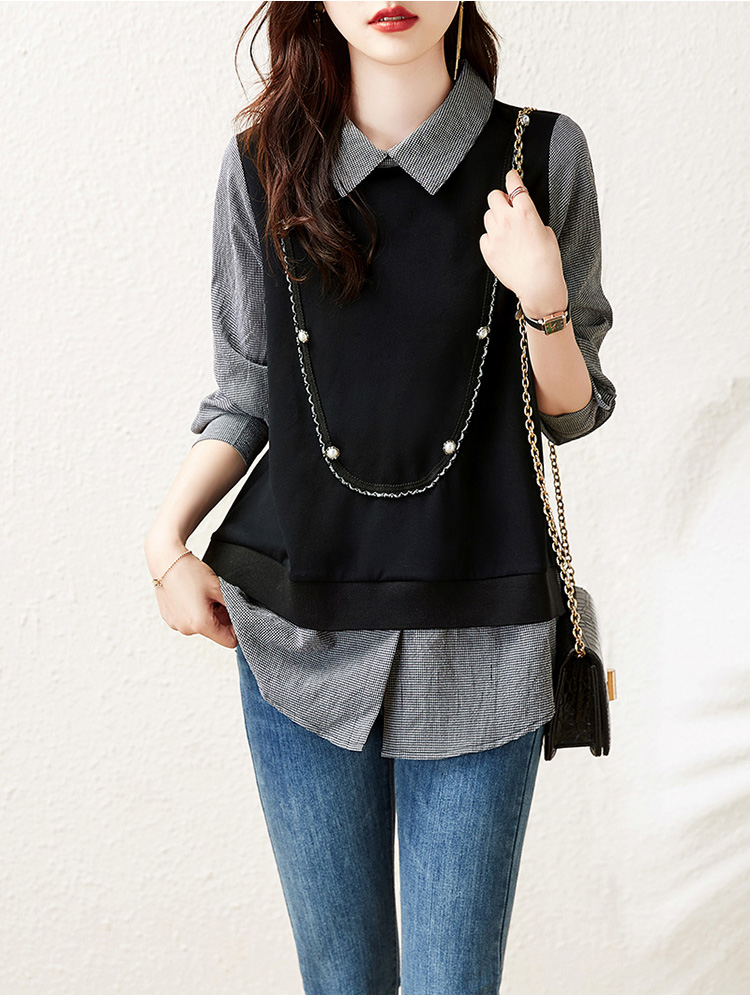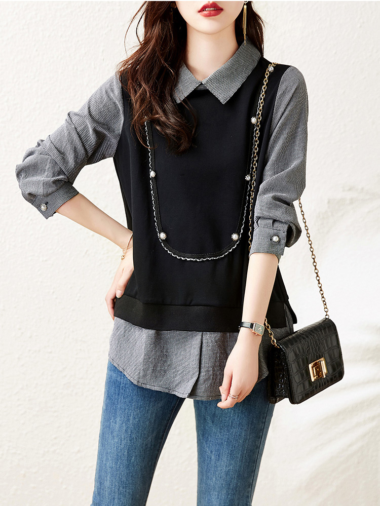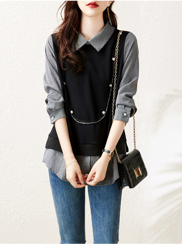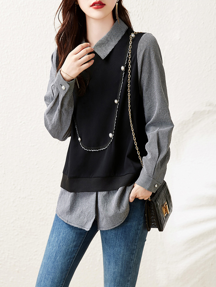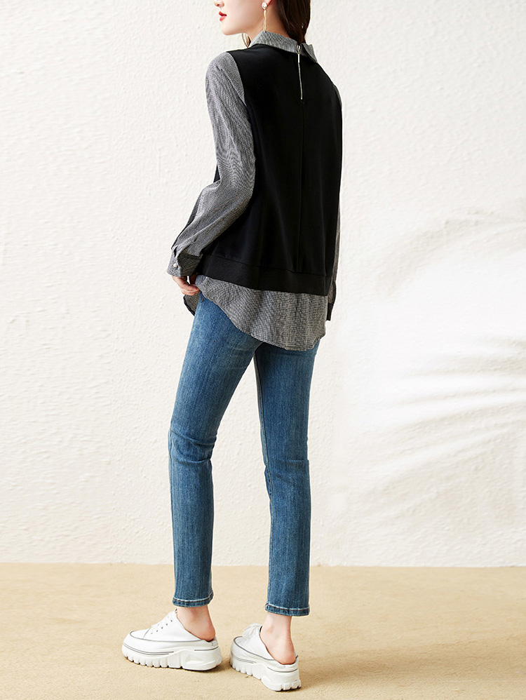 寬鬆撞色條紋假兩件針織拼接衛衣
