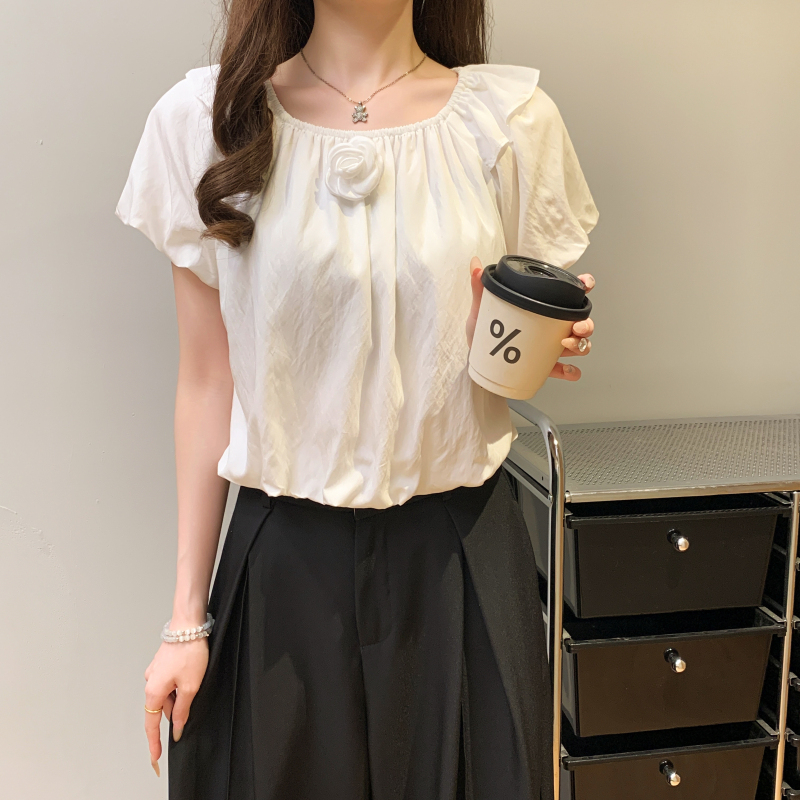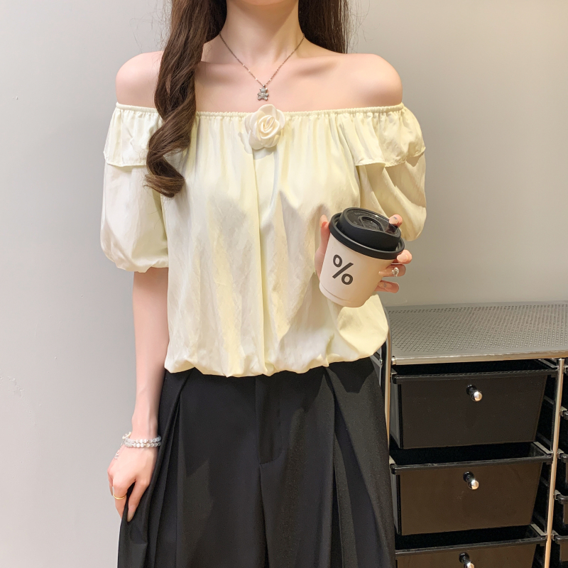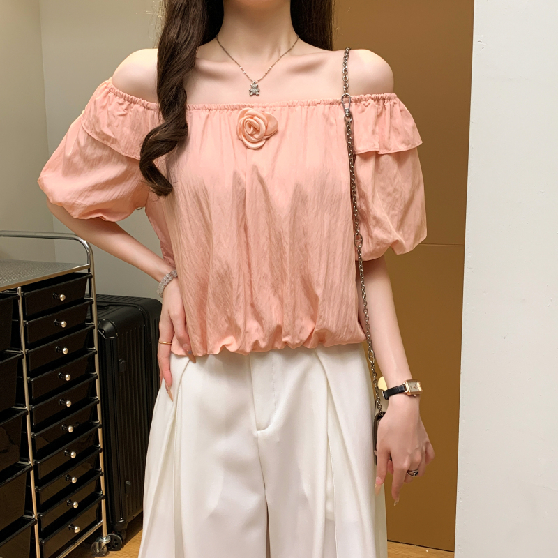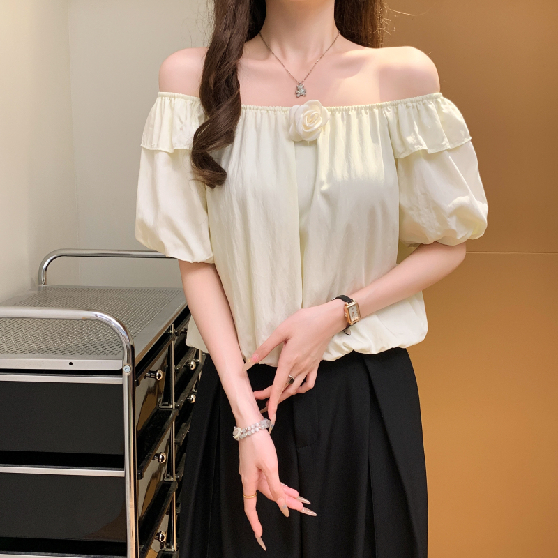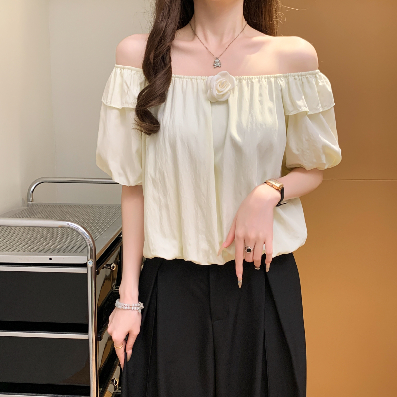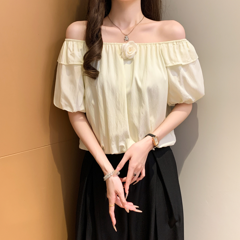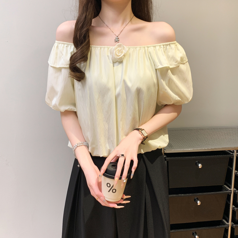 寬鬆一字肩泡泡袖襯衫(3色)