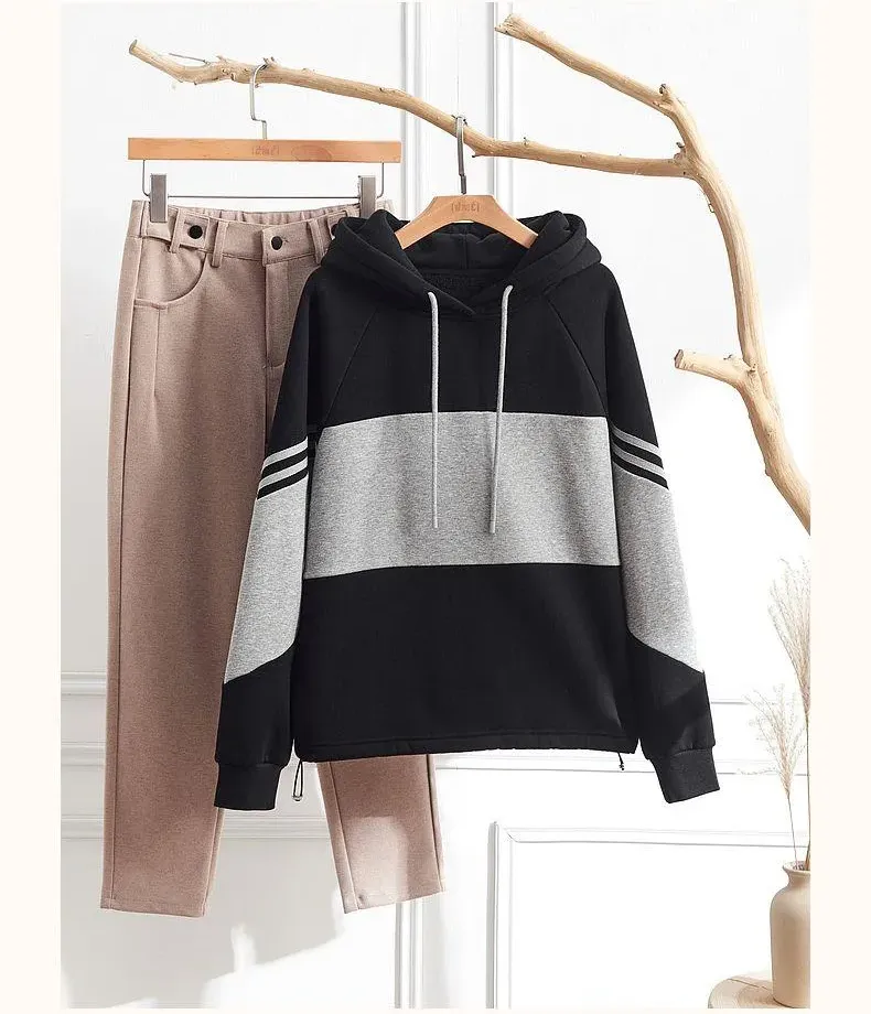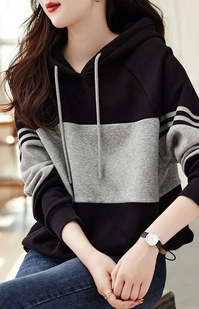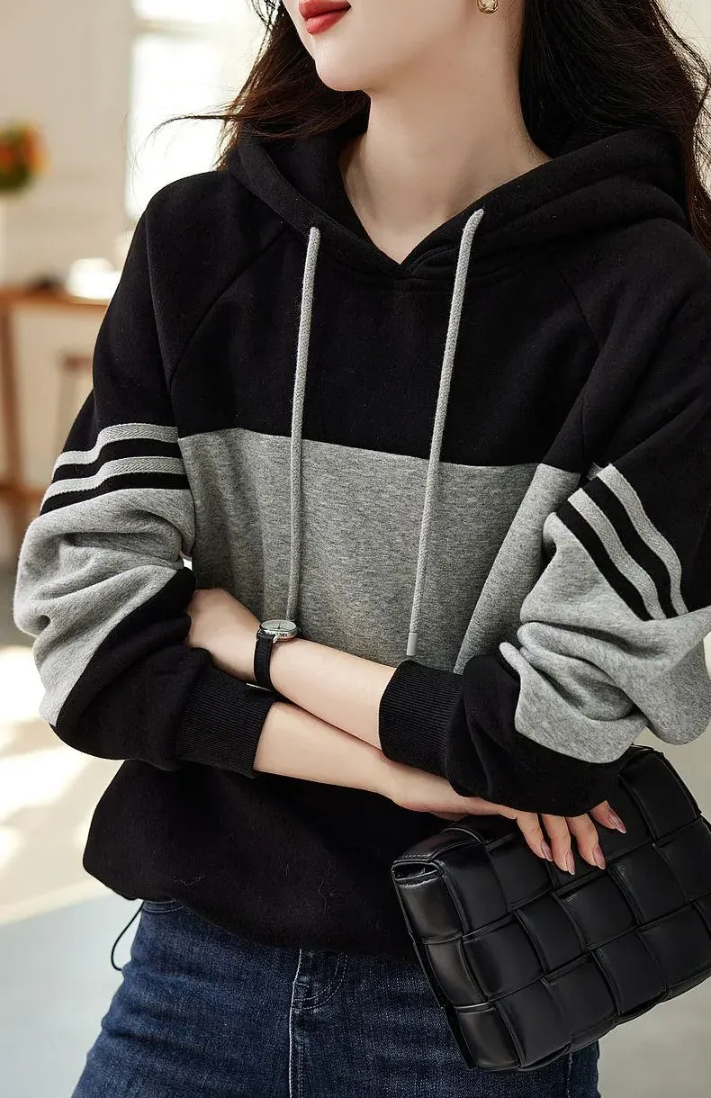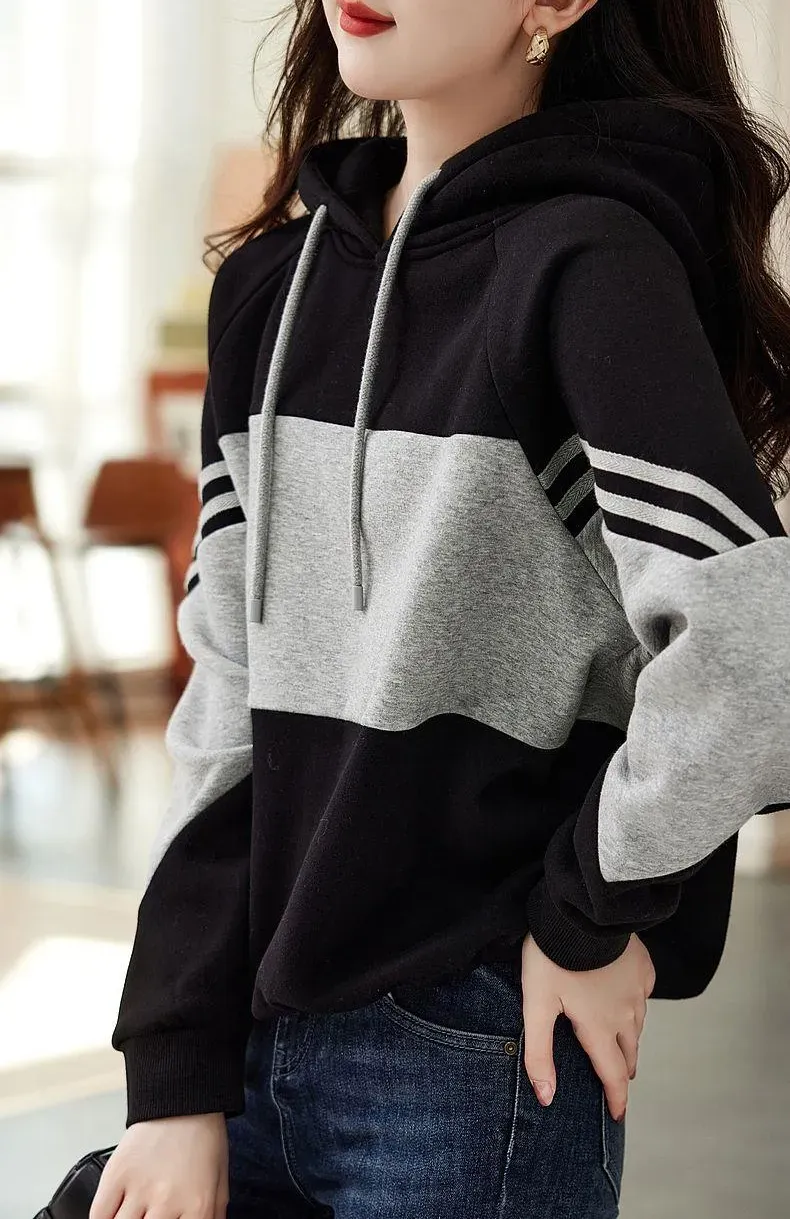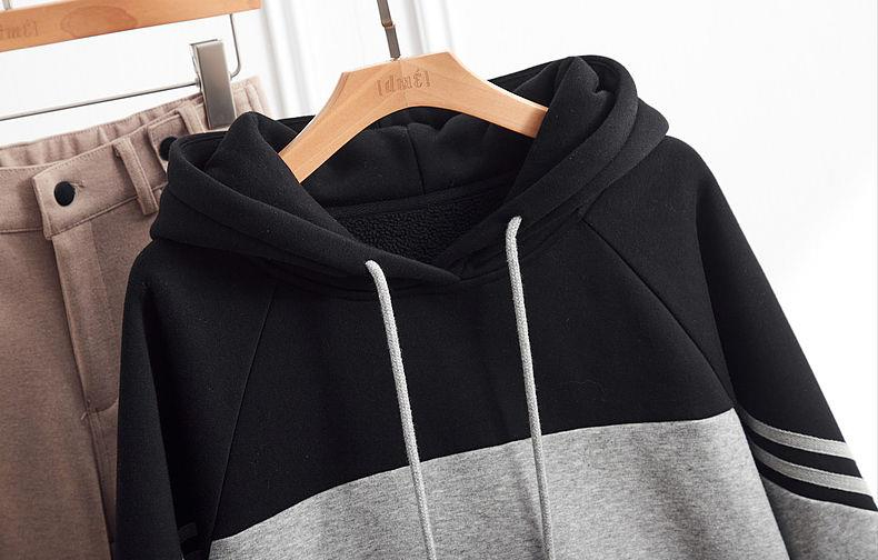 寬鬆條紋拼接休閒加厚連帽衛衣