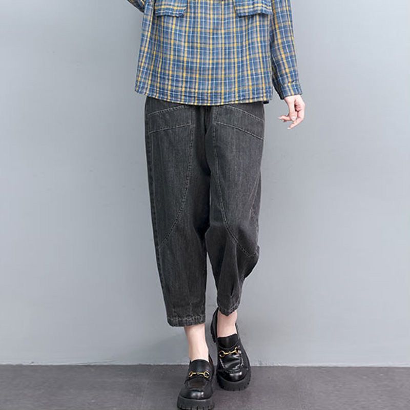 寬鬆薄款高腰九分哈倫牛仔褲(2色)