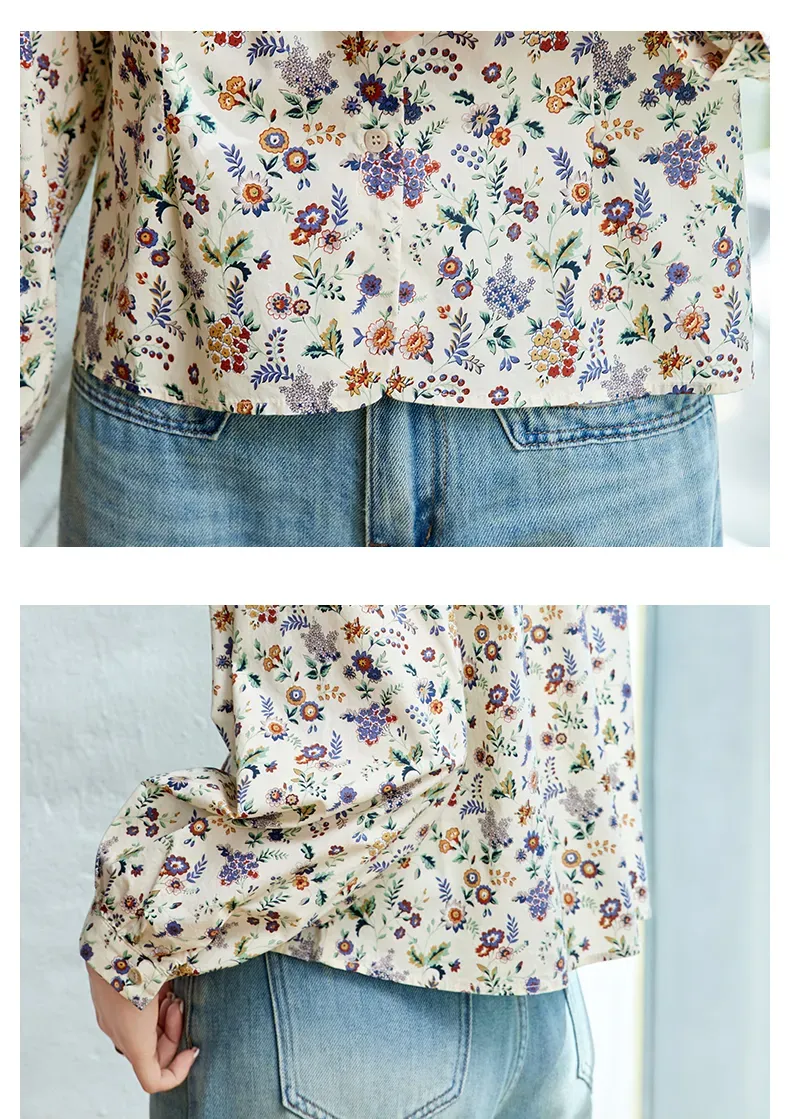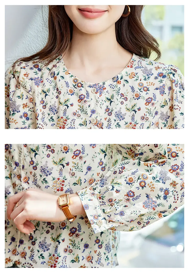田園風寬鬆休閒圓領碎花襯衫