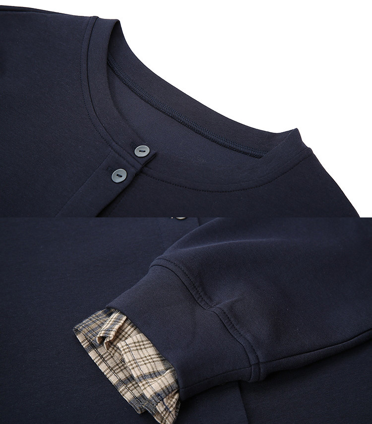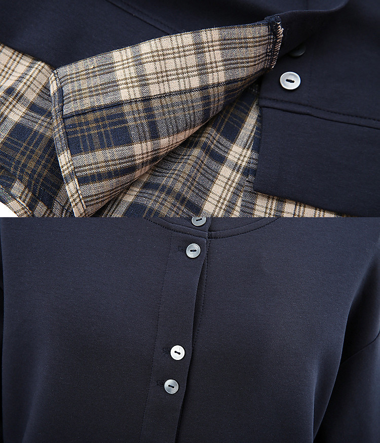格紋拼接寬鬆簡約拼接下擺衛衣