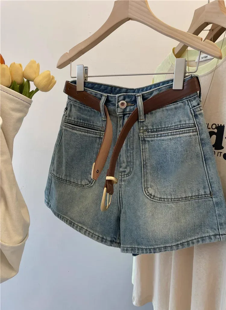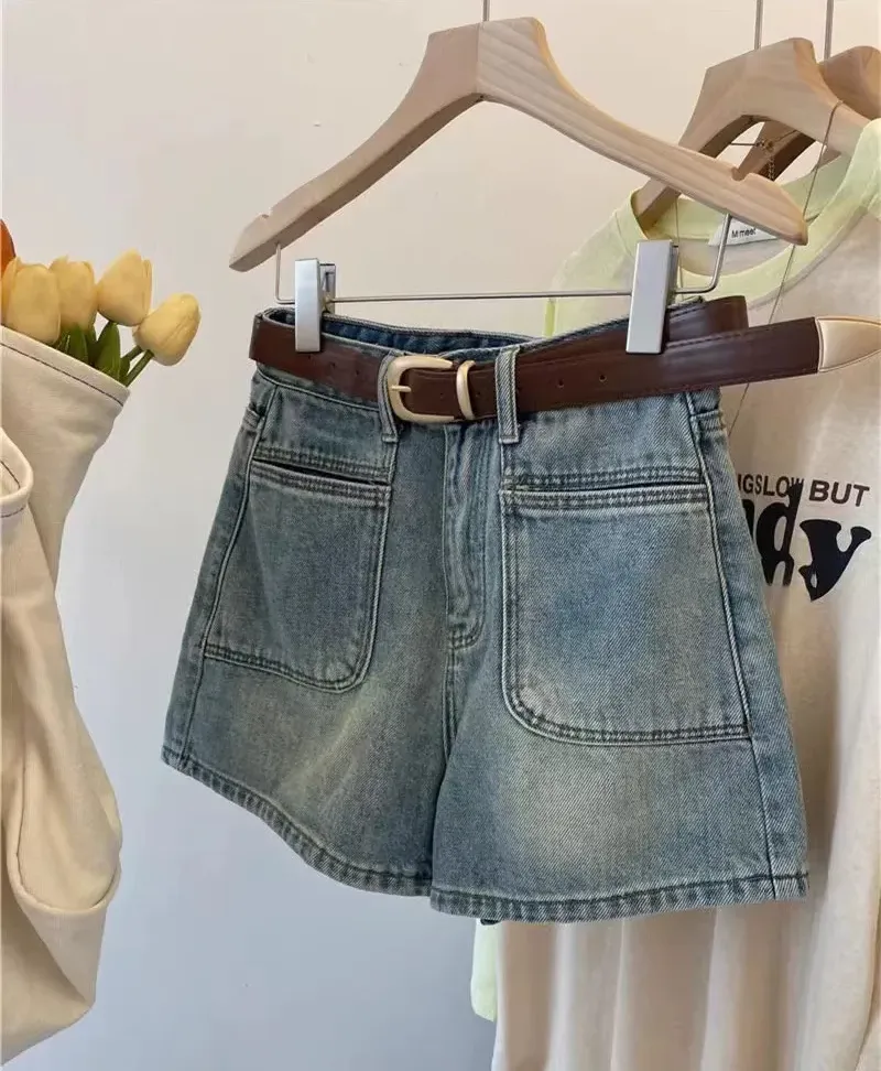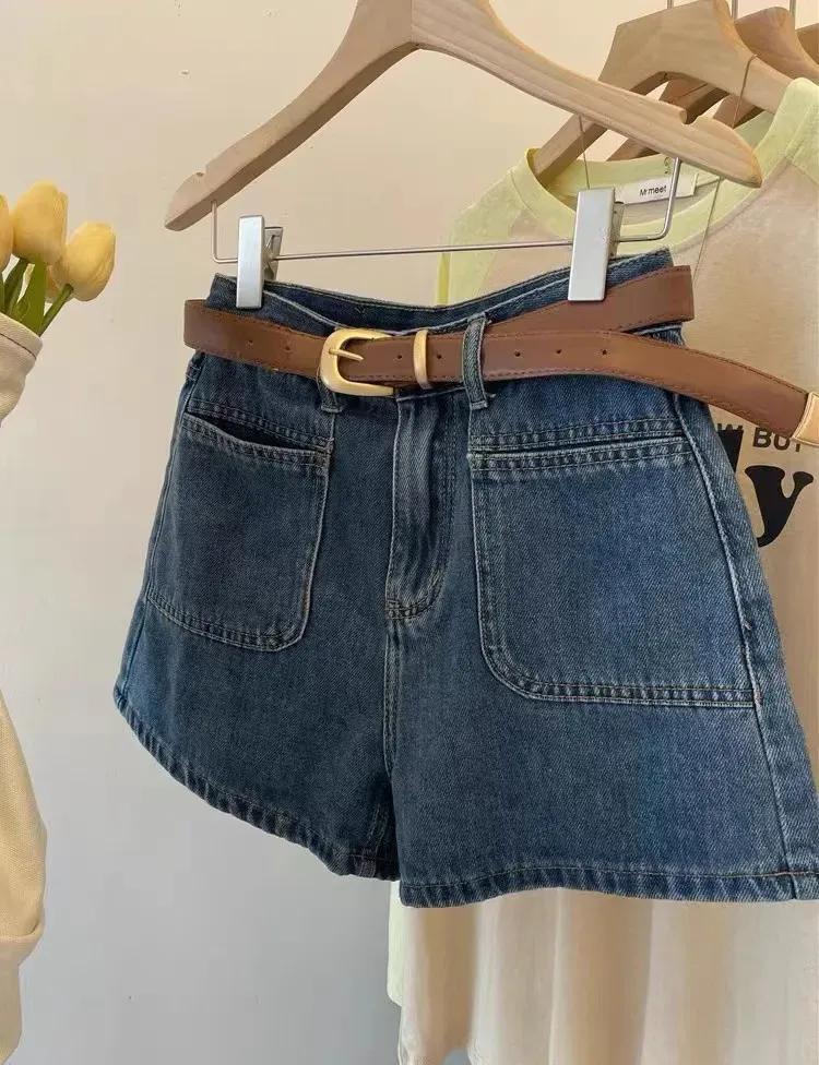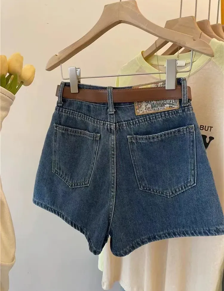 大碼高腰顯瘦A字闊腿牛仔短褲(2色)