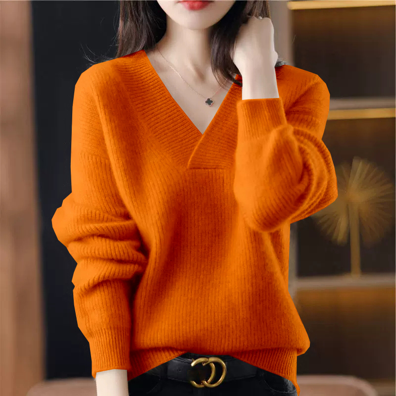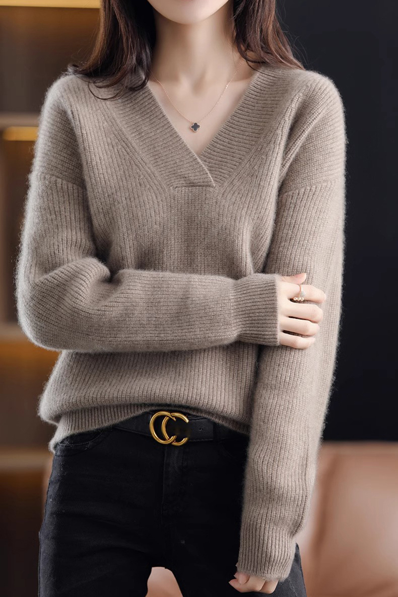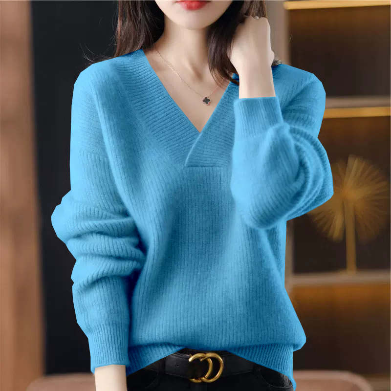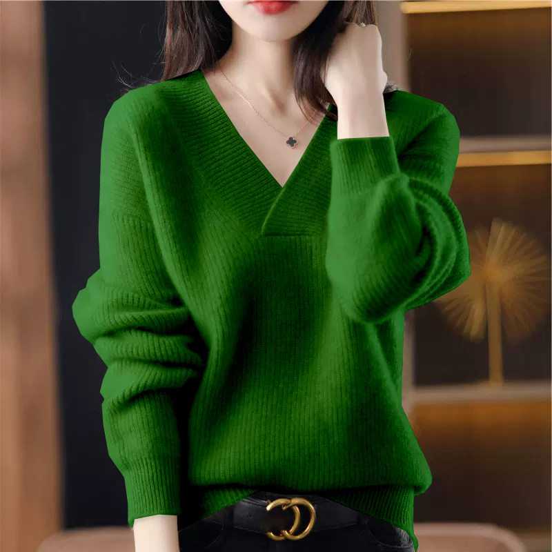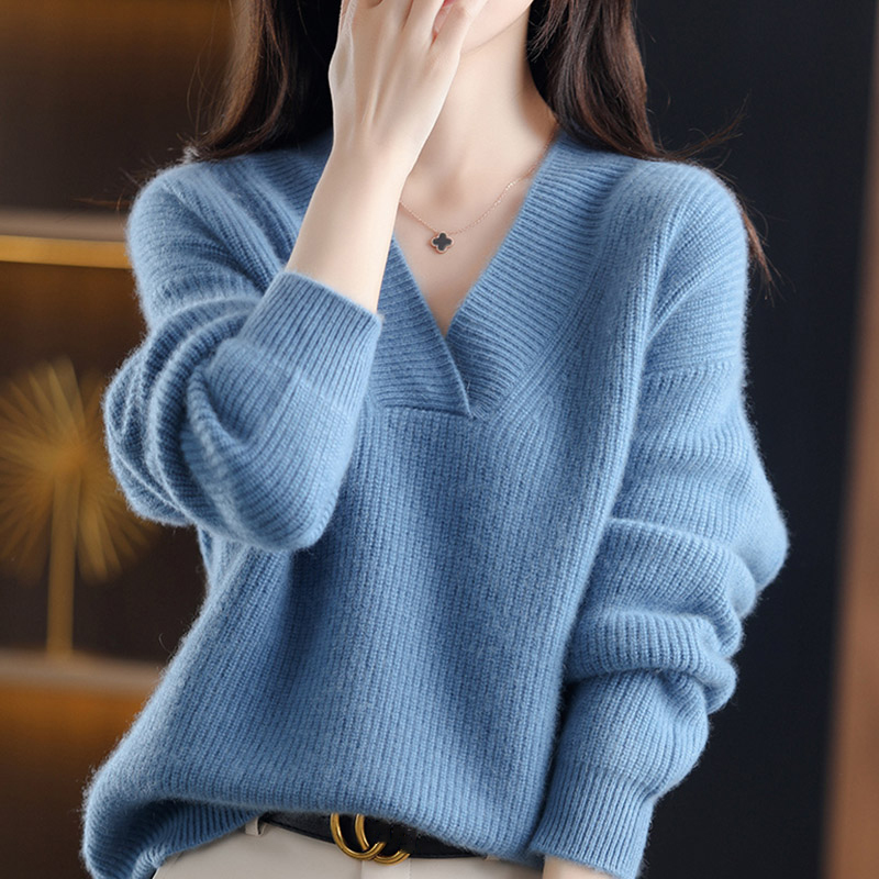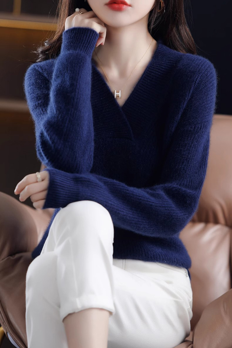 復古寬鬆純色V領針織抽條毛衣(10色)
