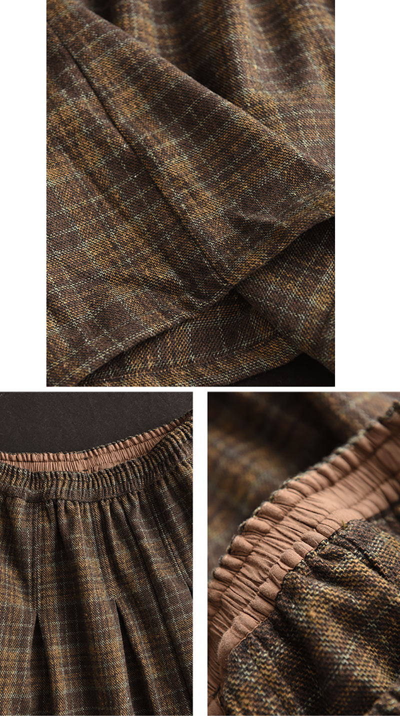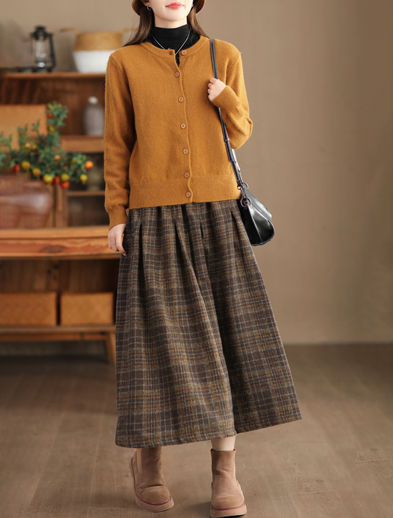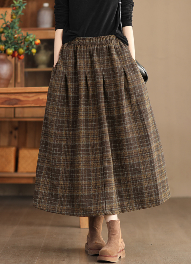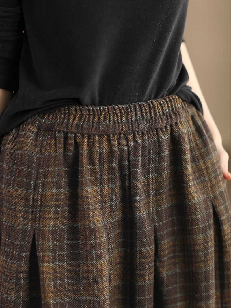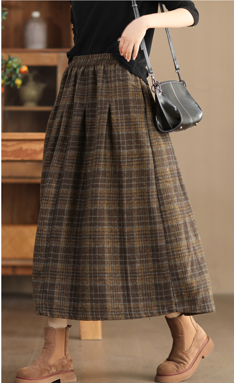 復古格紋高腰中長款半身裙