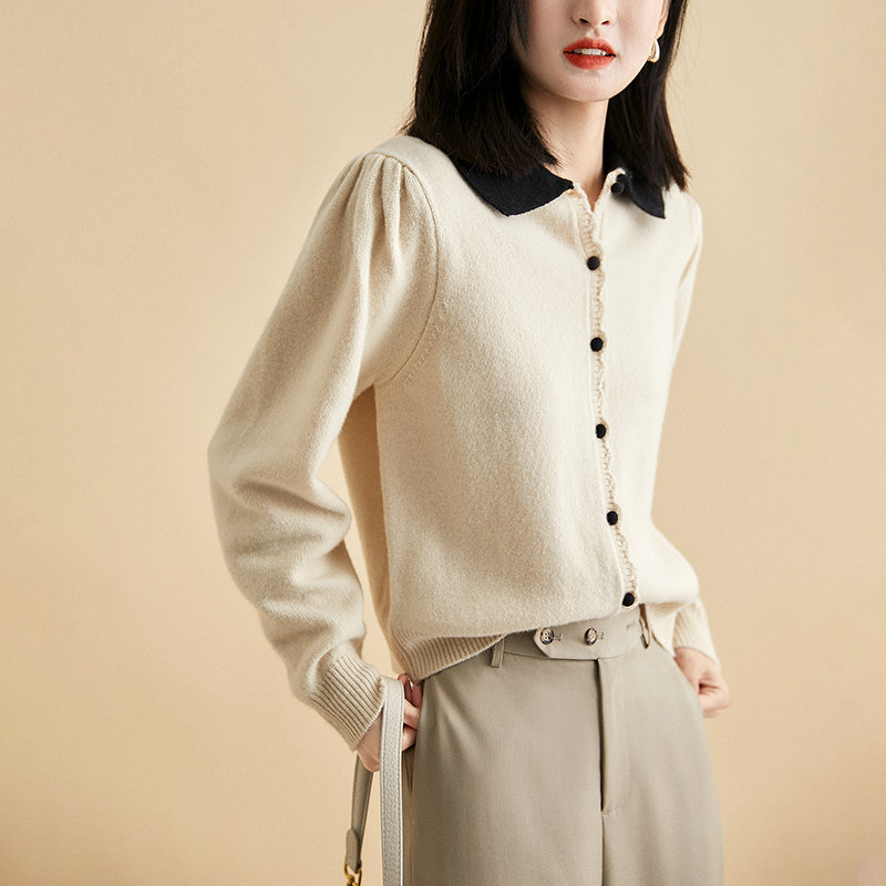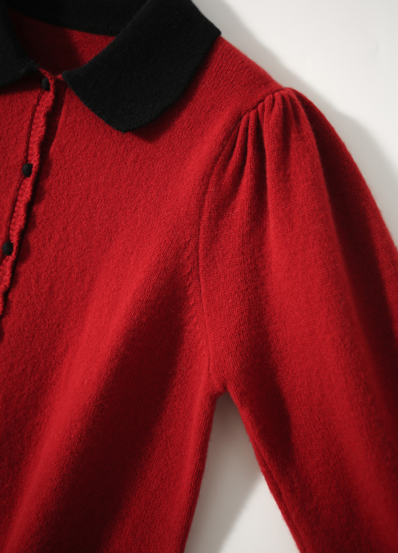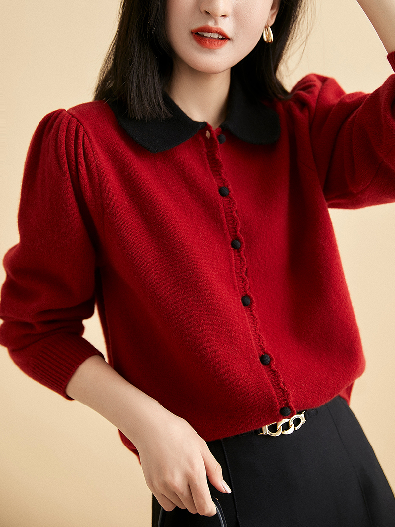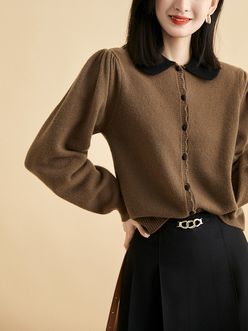 復古柔軟翻領長袖針織開襟衫(3色)