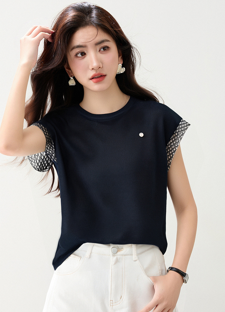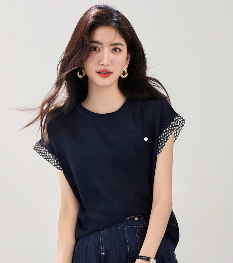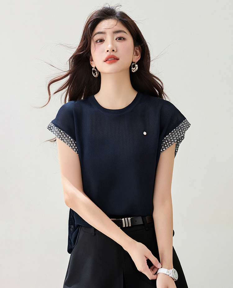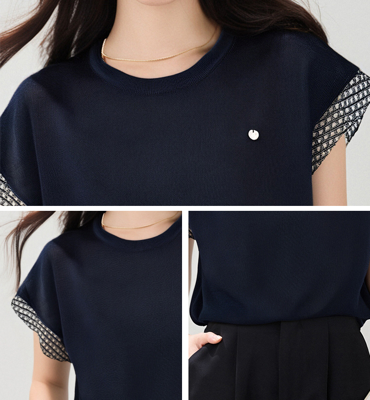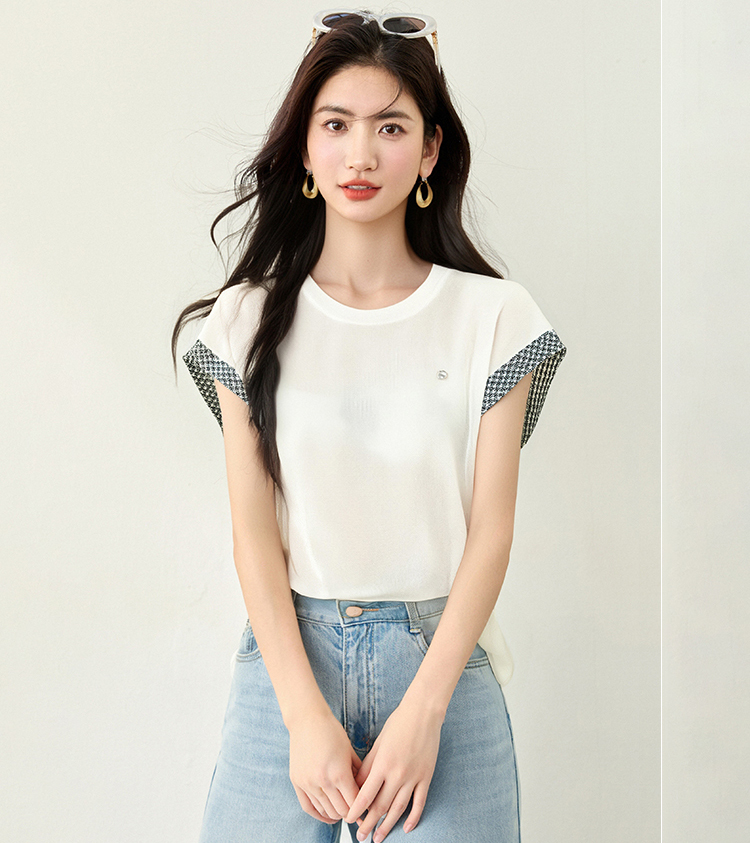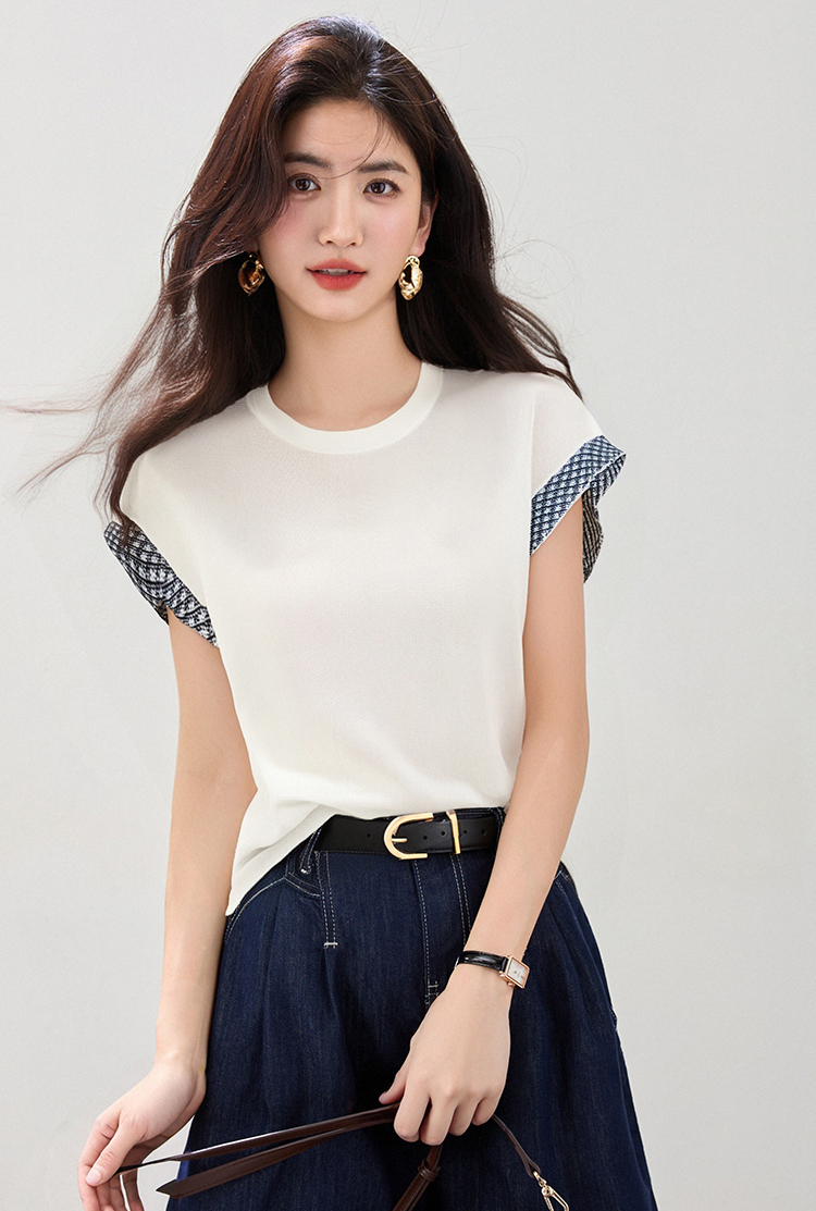 圓領拼色刺綉針織T恤(2色)