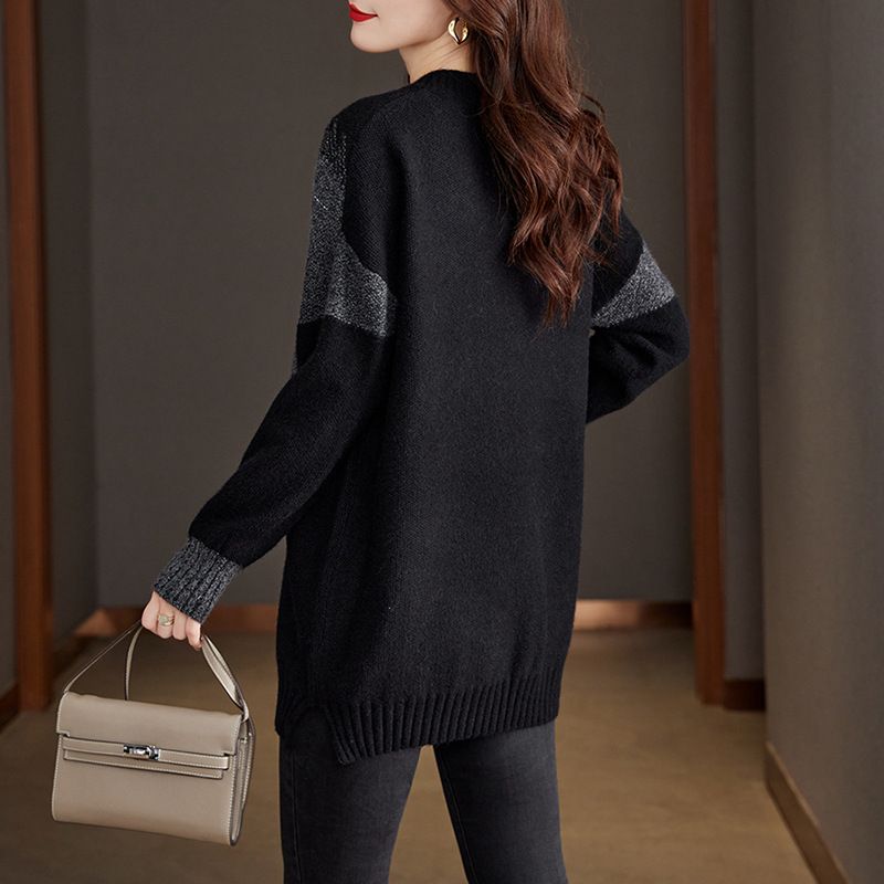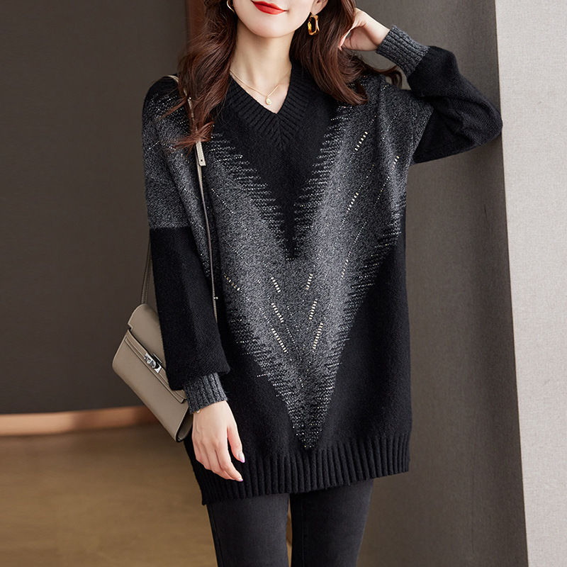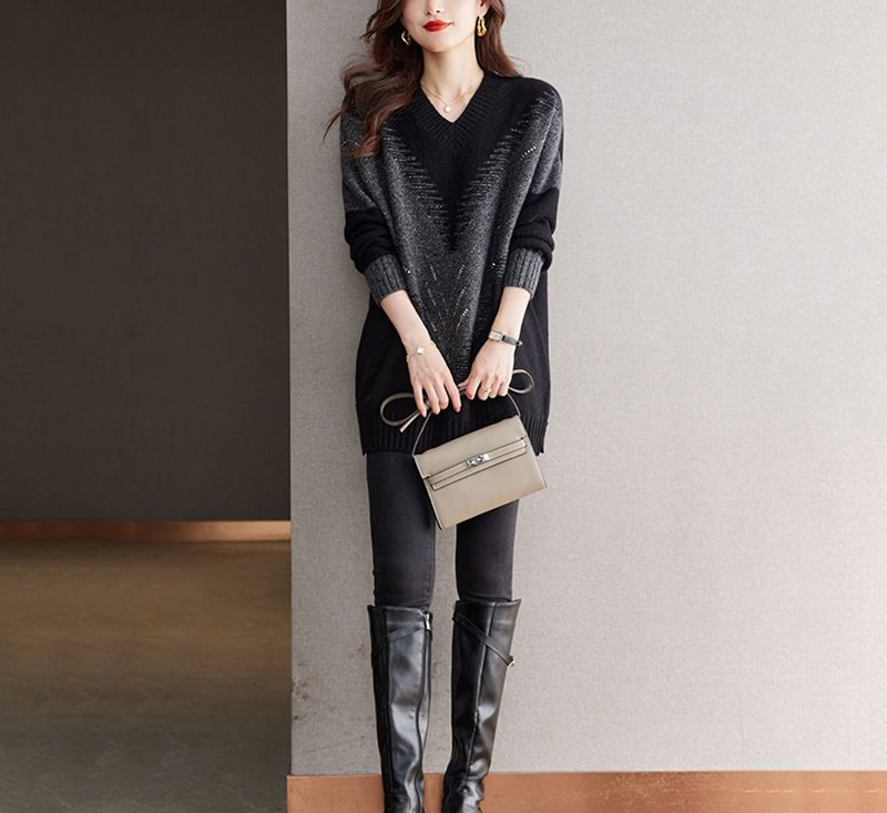 簡約休閒V領長袖針織衫