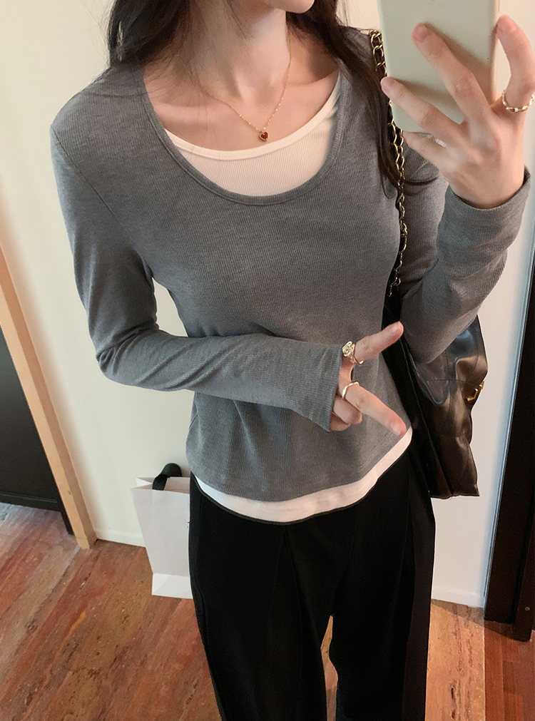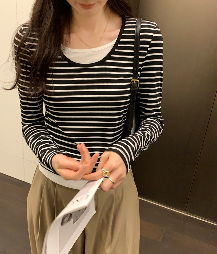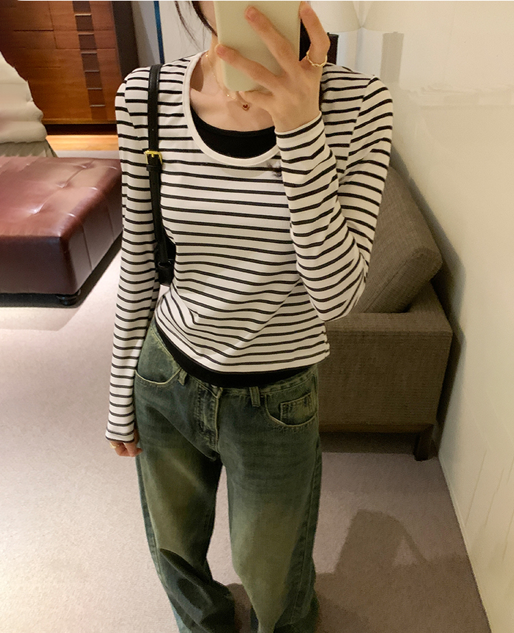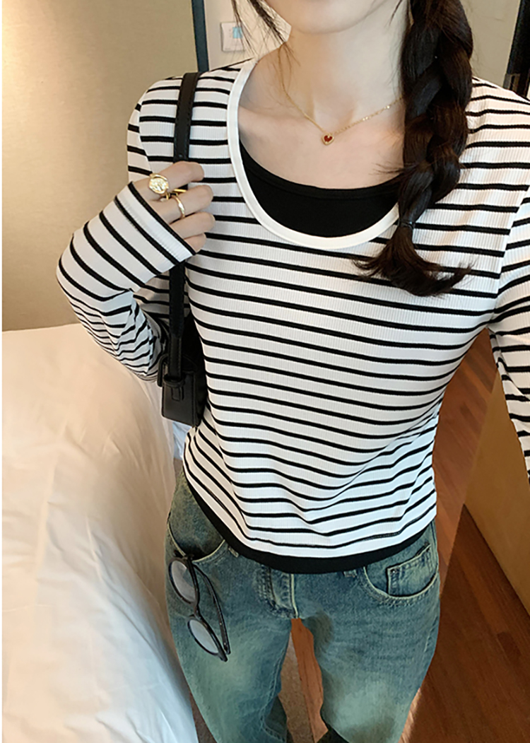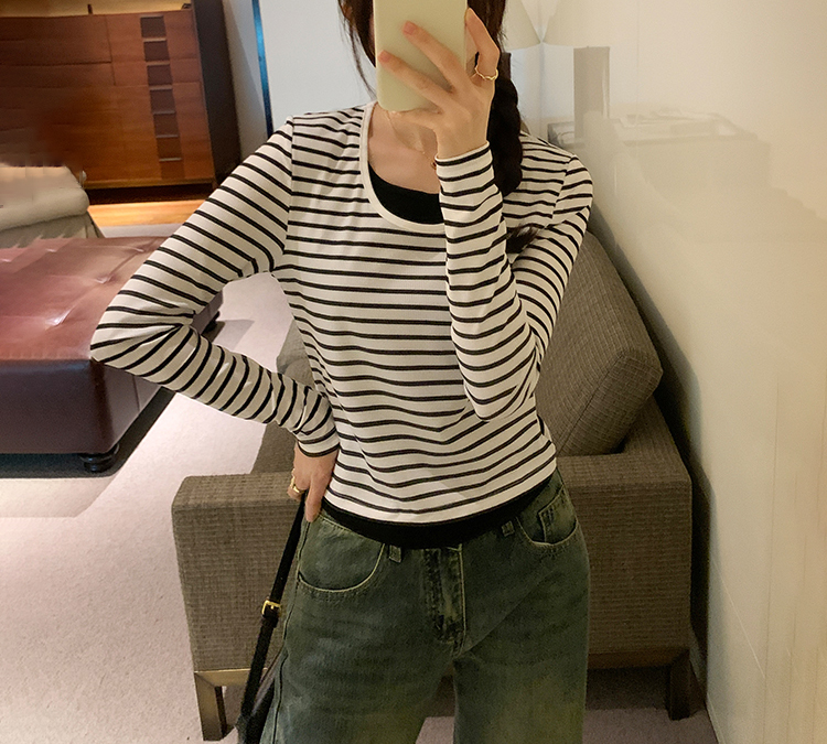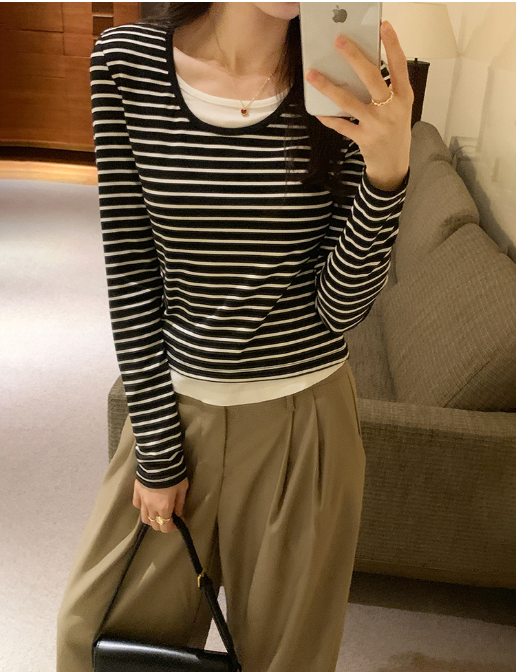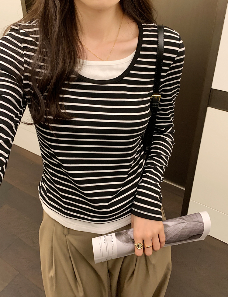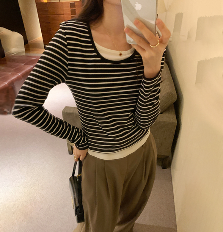 簡約時尚假兩件條紋撞色T恤(4色)