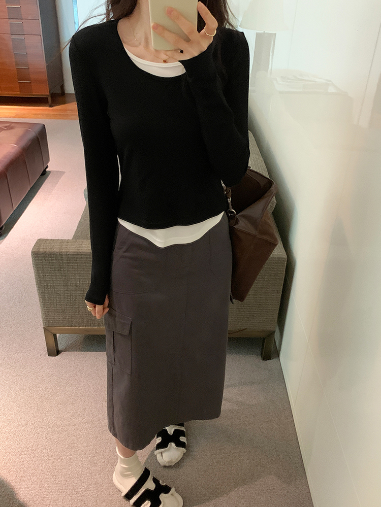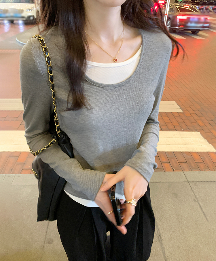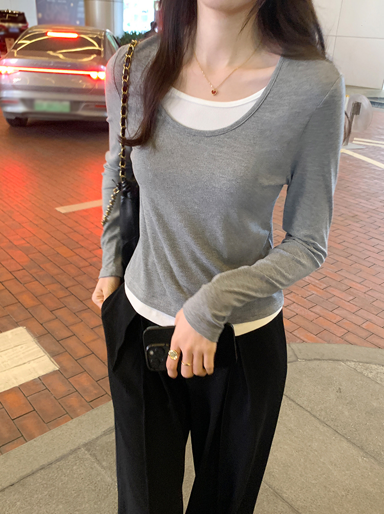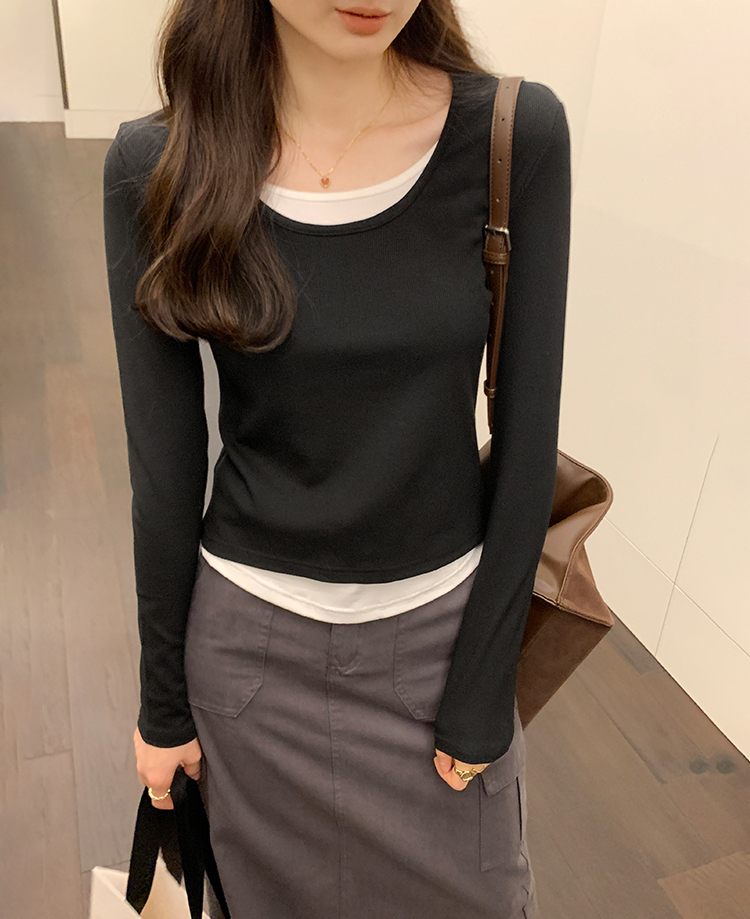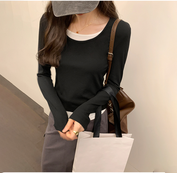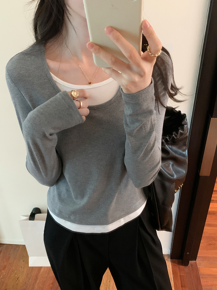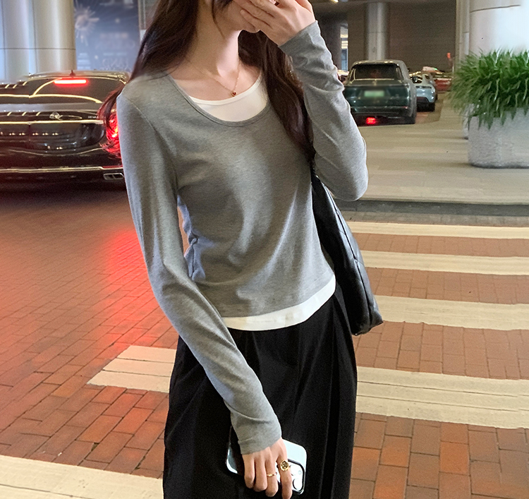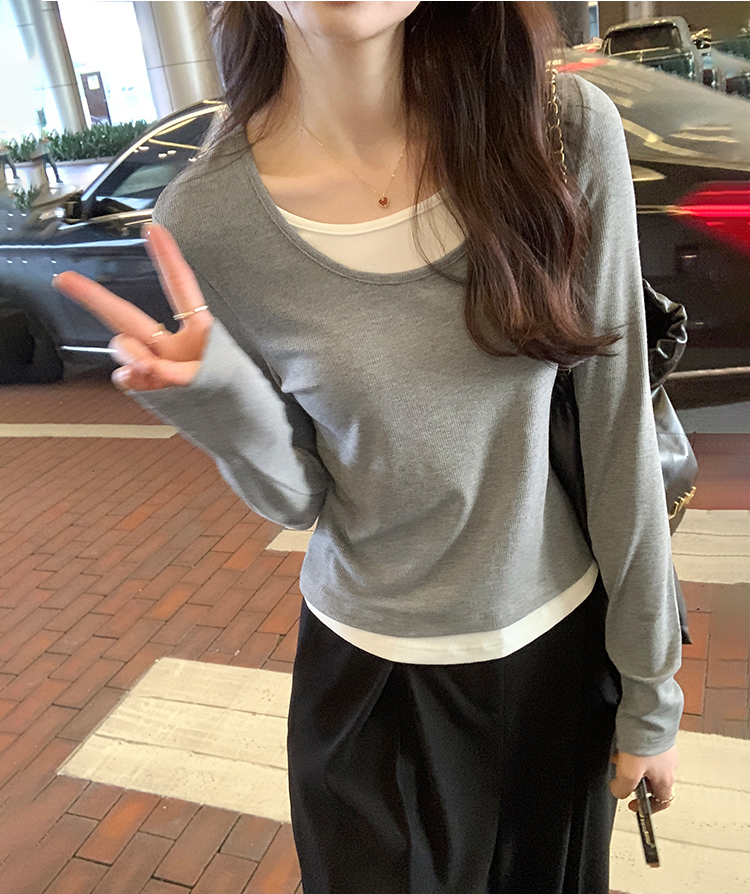 簡約時尚假兩件條紋撞色T恤(4色)