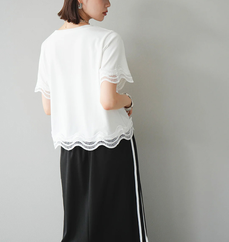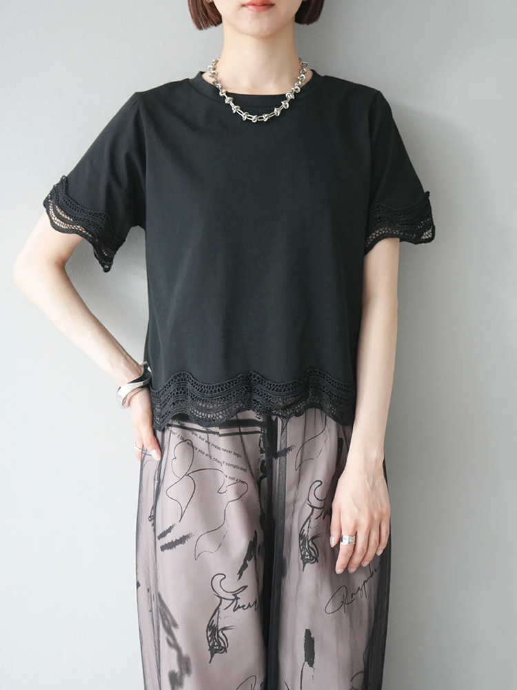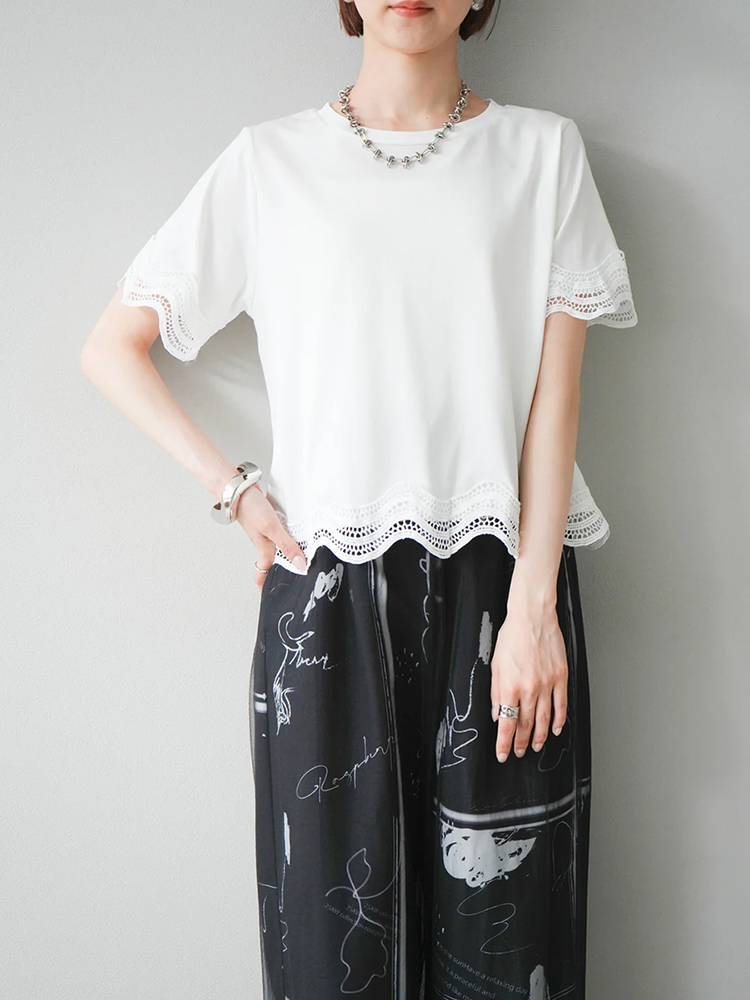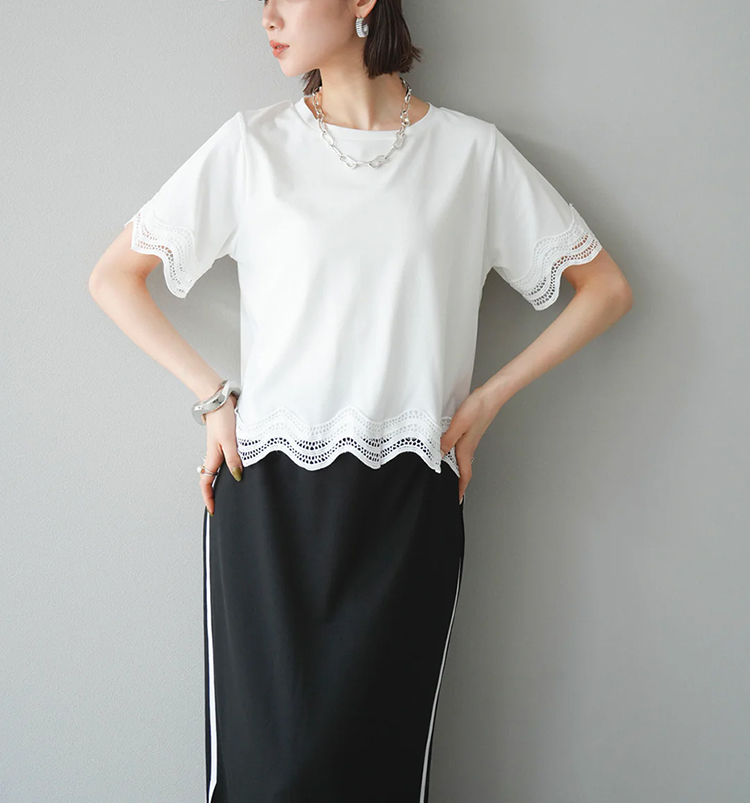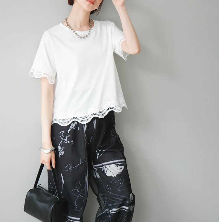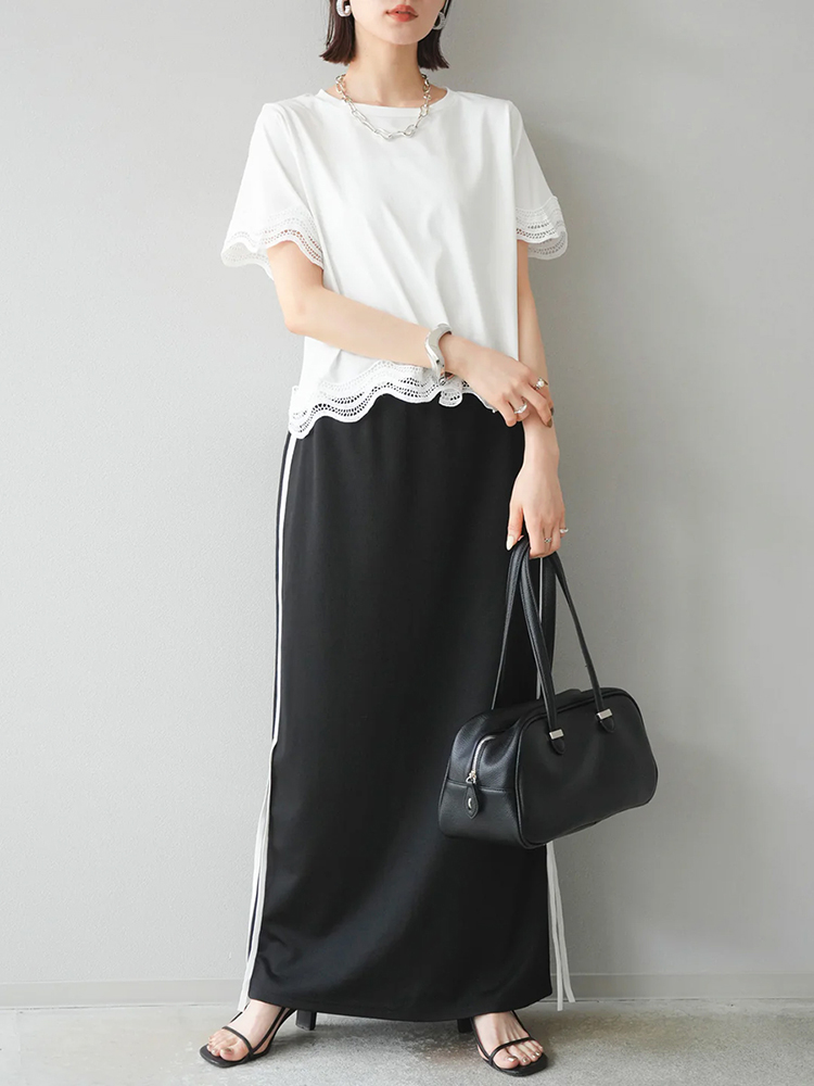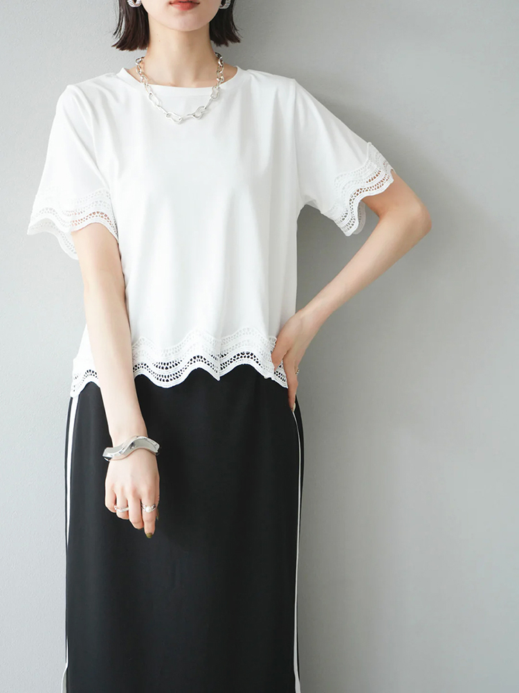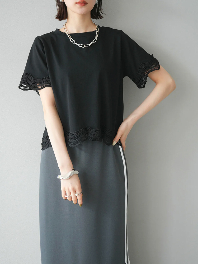 簡約圓領繡拼接短袖T恤(2色)
