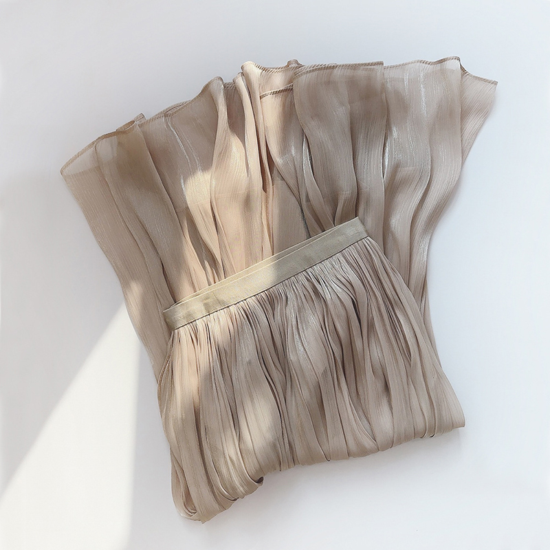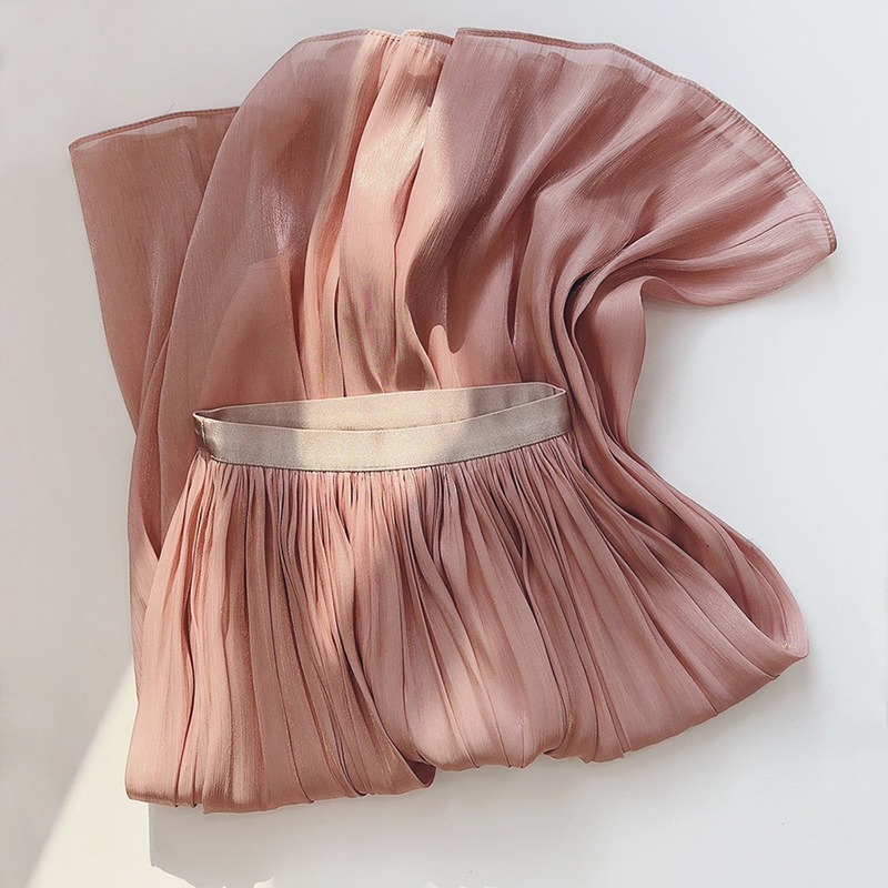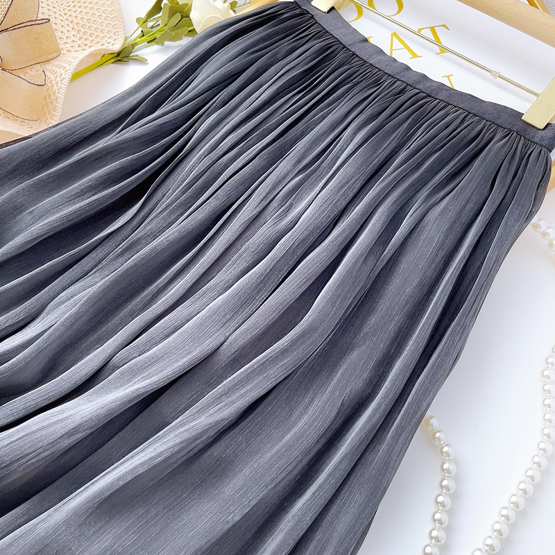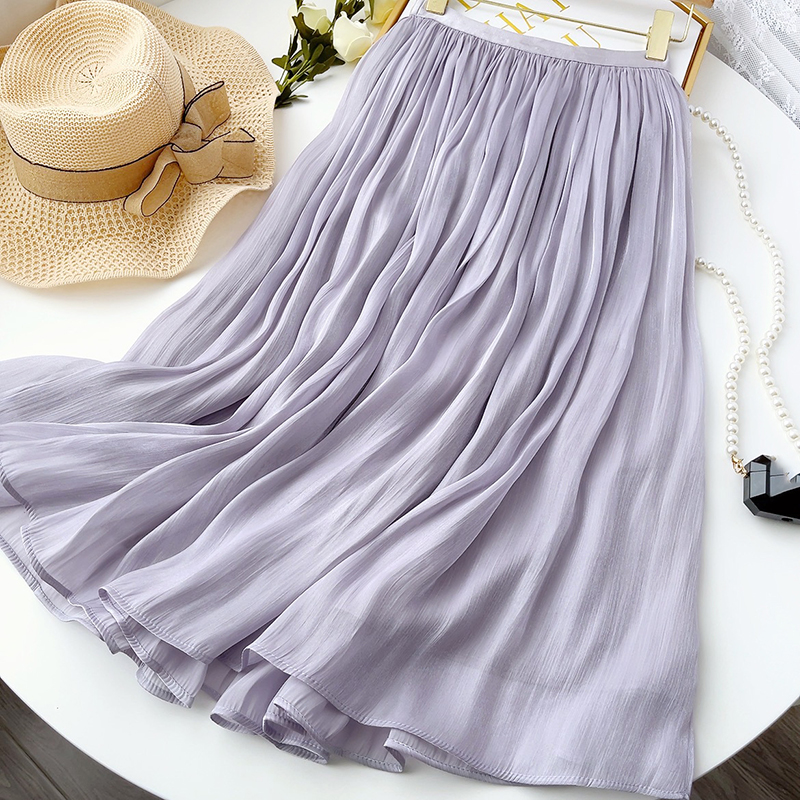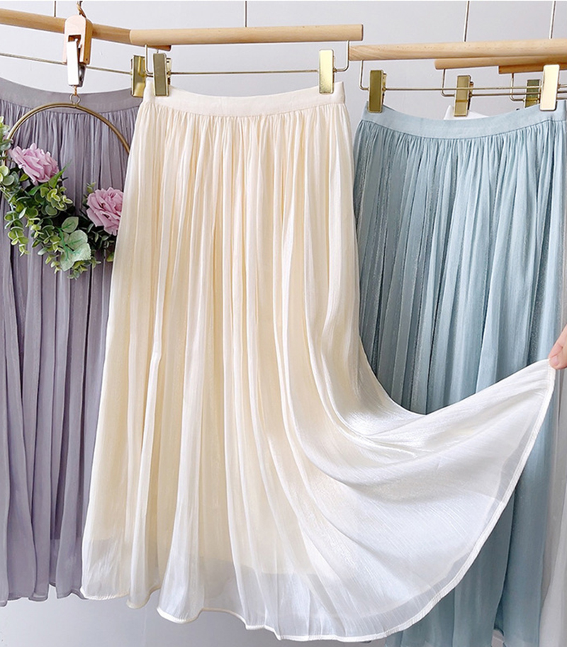 修身絲光紗中長款A字飄逸半身裙(8色)