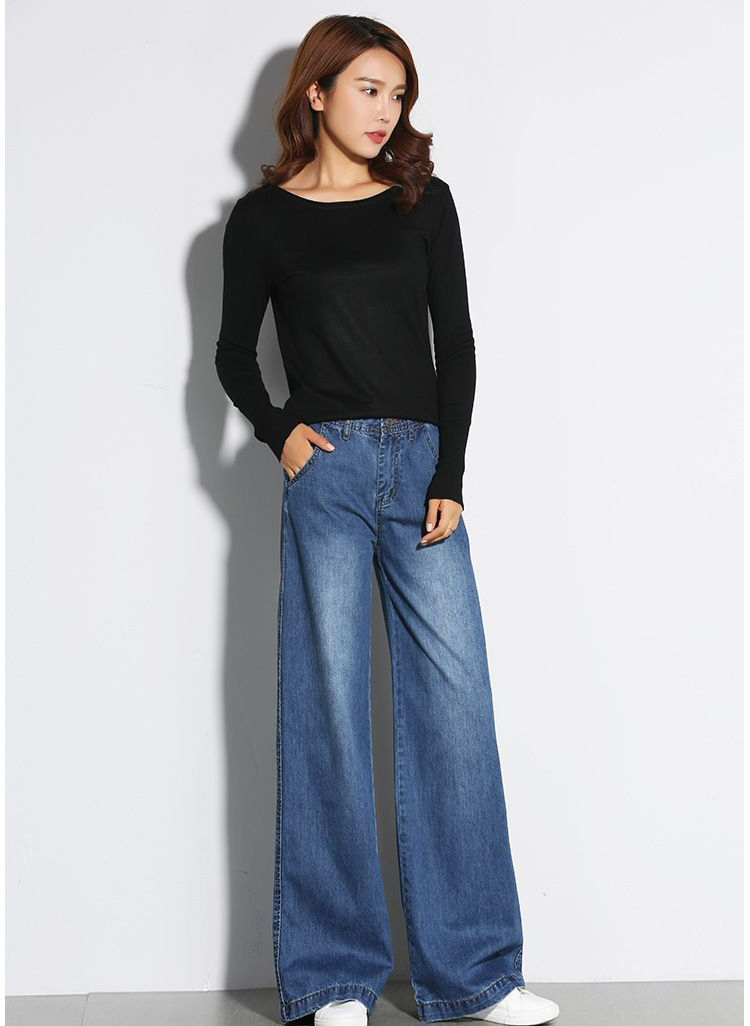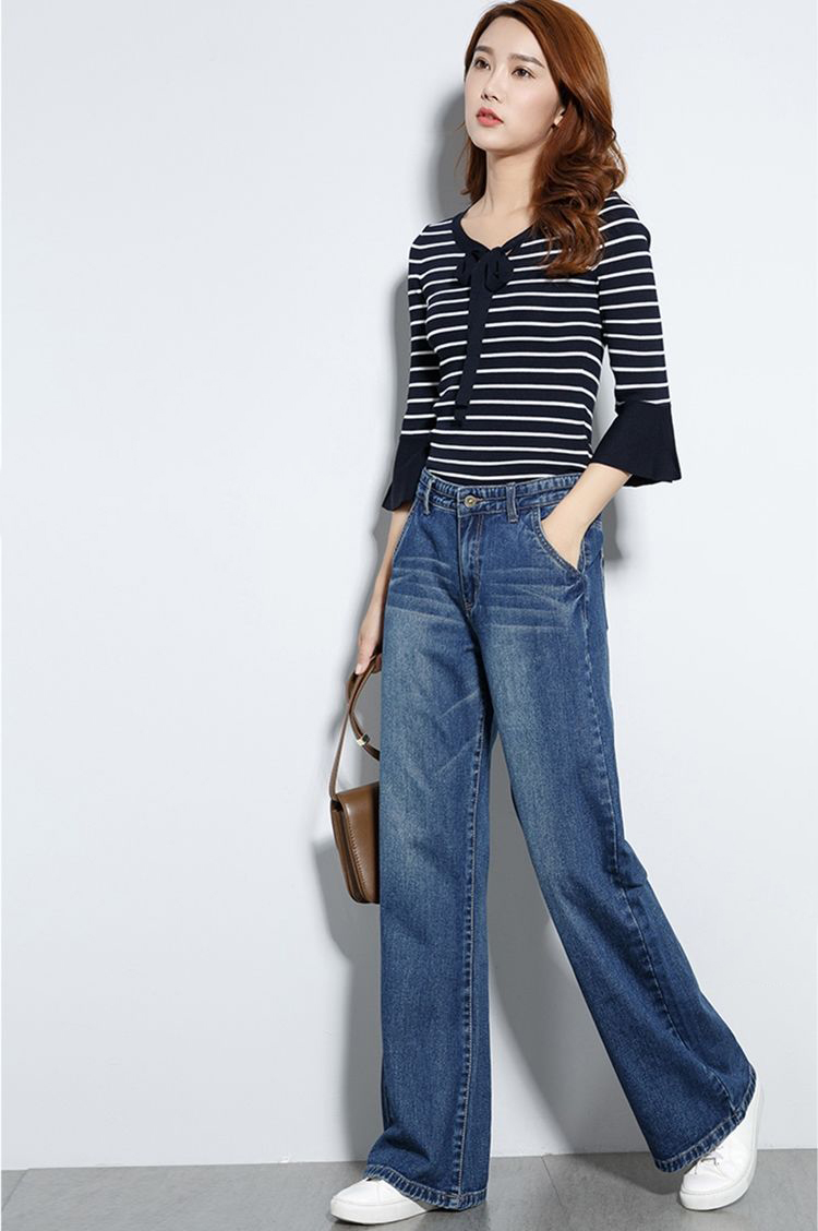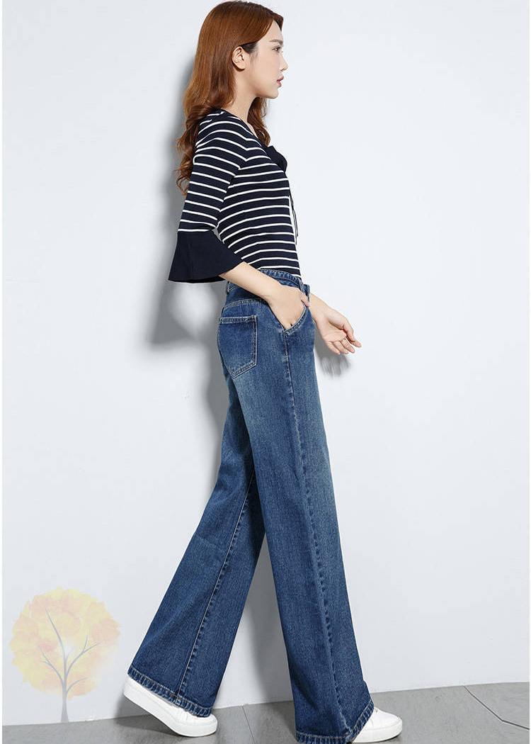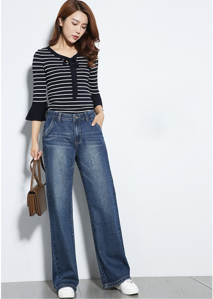 顯瘦復古高腰闊腿寬鬆直筒牛仔褲裝