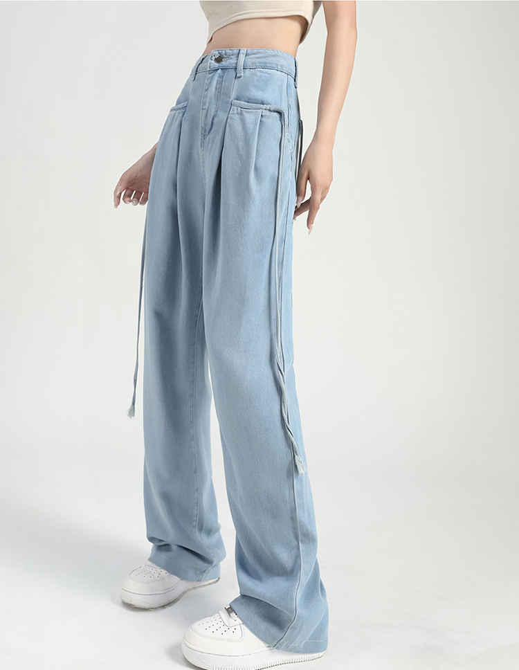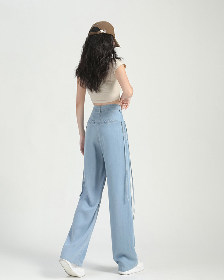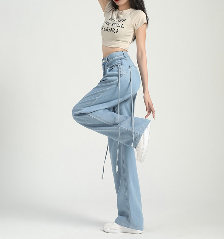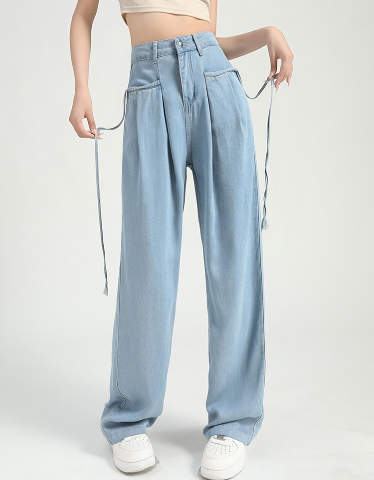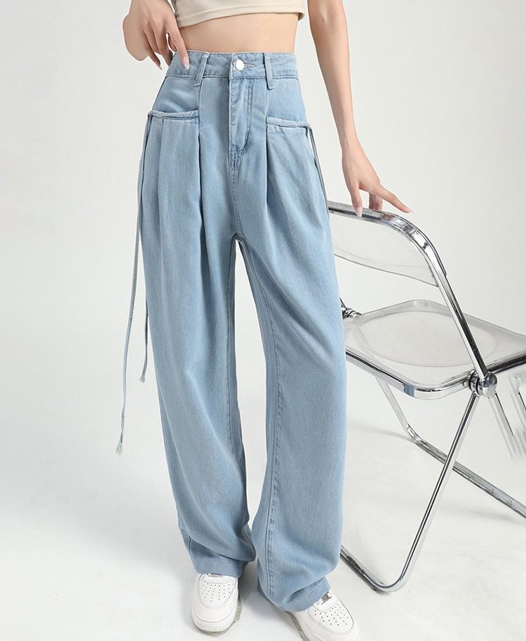 慵懶舒適高腰抽繩薄款牛仔褲