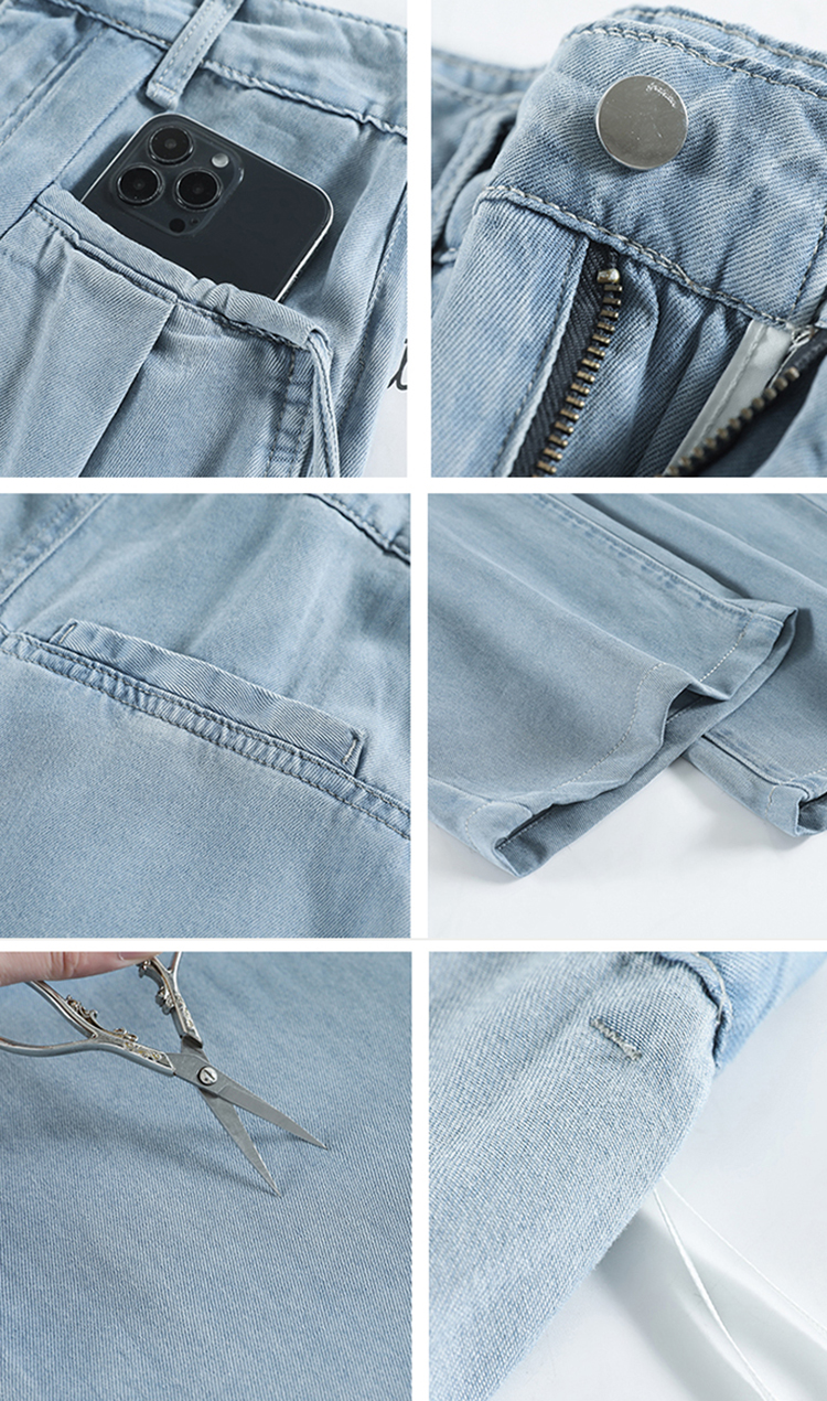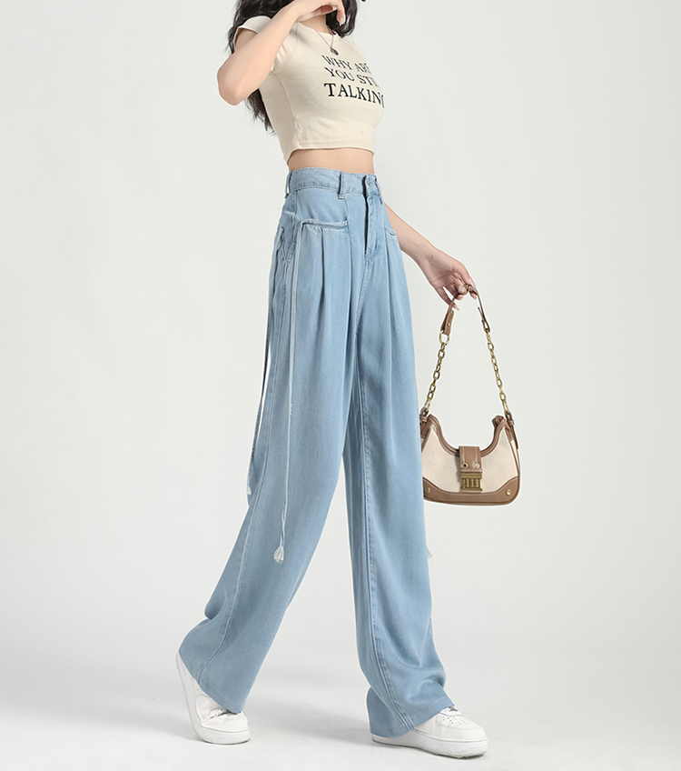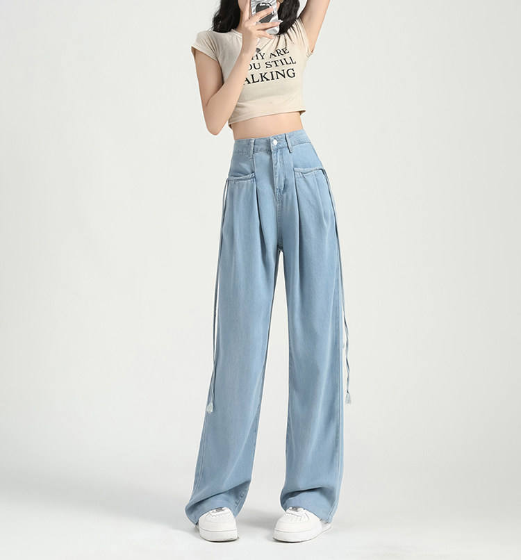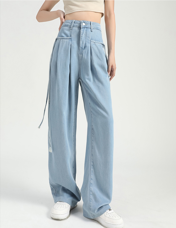 慵懶舒適高腰抽繩薄款牛仔褲