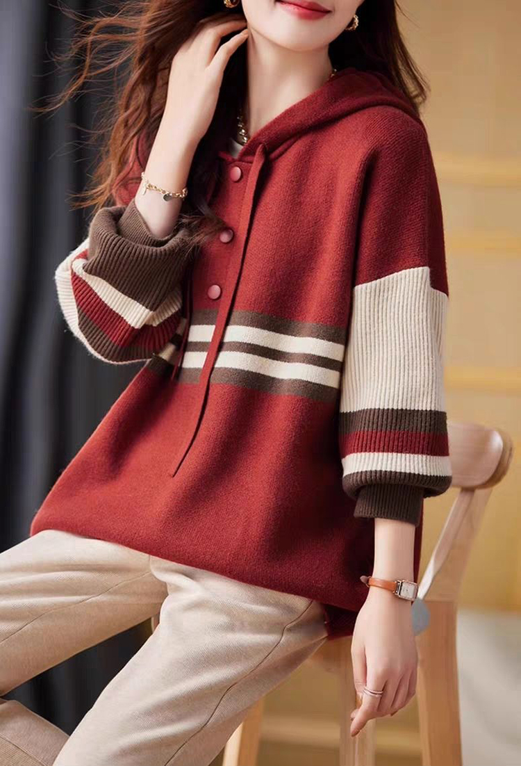 時尚連帽領針織毛衣衛衣(2色)