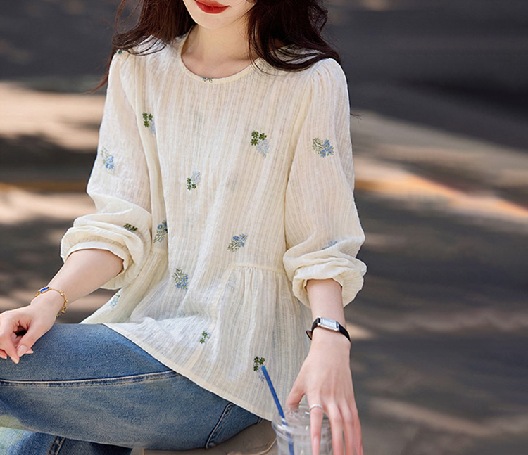 時尚圓領通勤刺繡長袖小衫