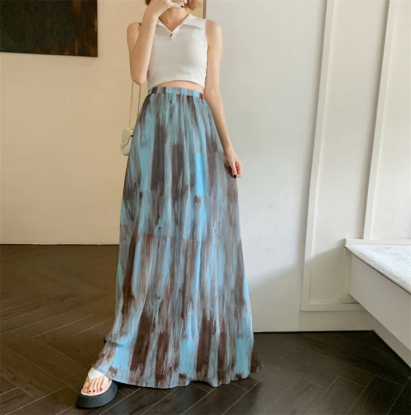 肌理感扎染高腰顯瘦百褶長裙(2色)