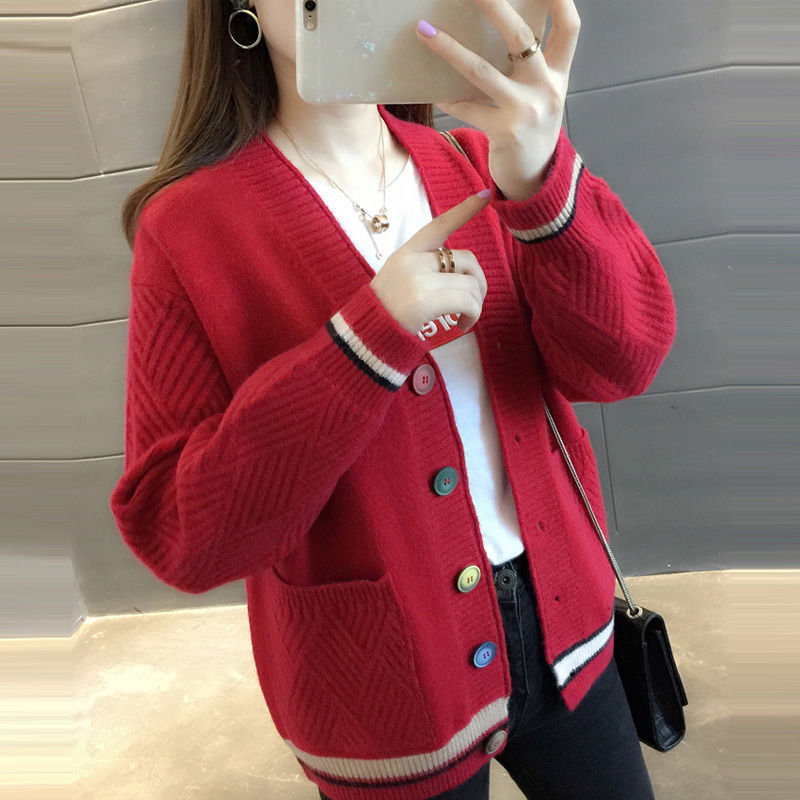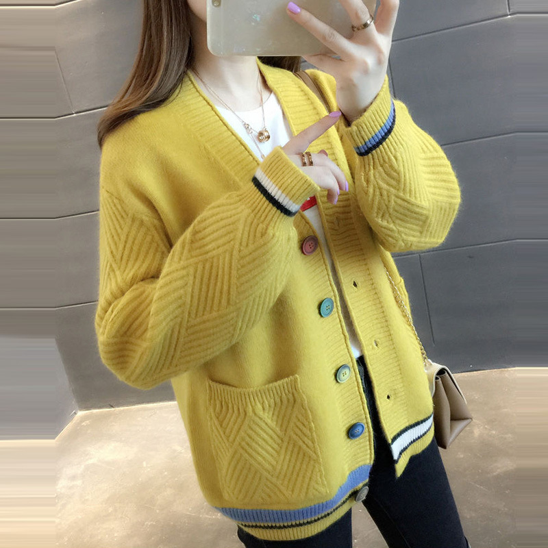 百搭V領拼色長袖針織開襟衫(6色)
