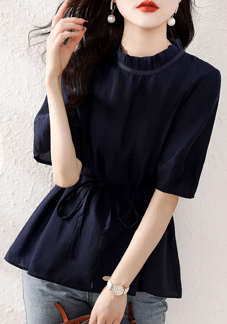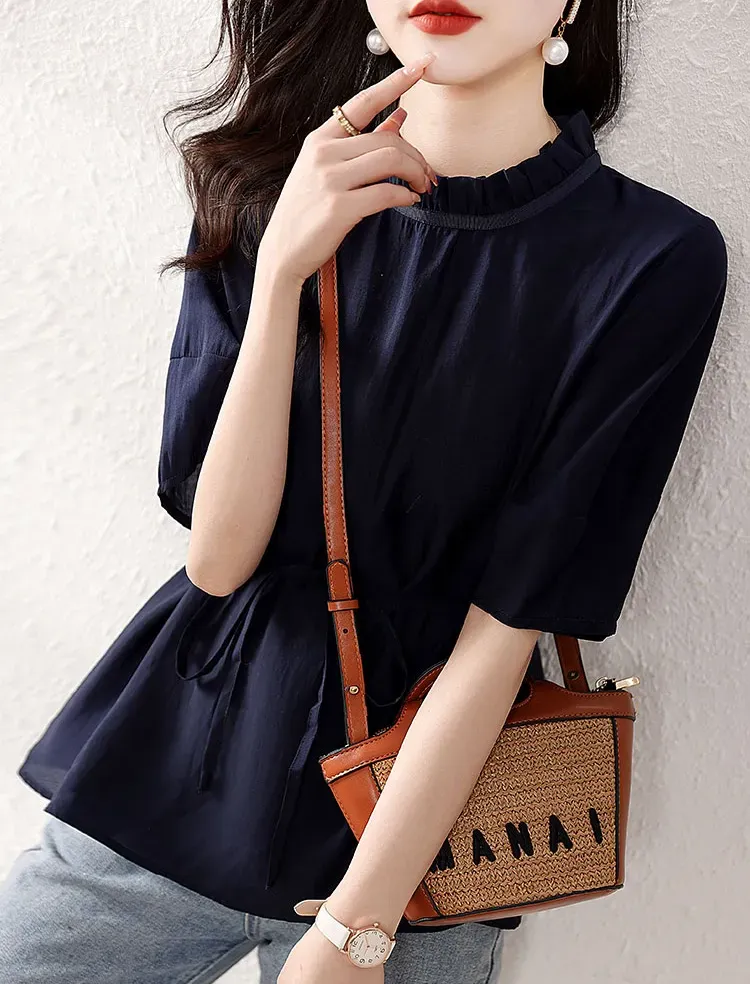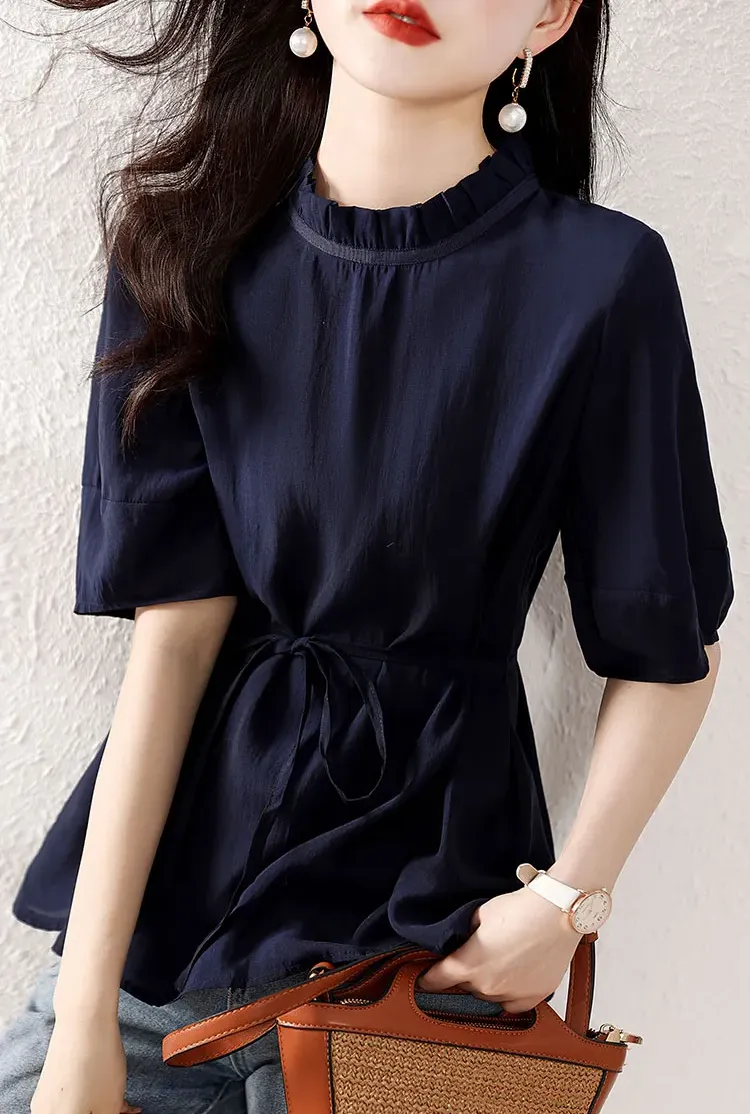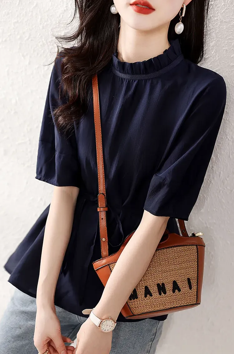 復古燈籠袖收腰襯衫